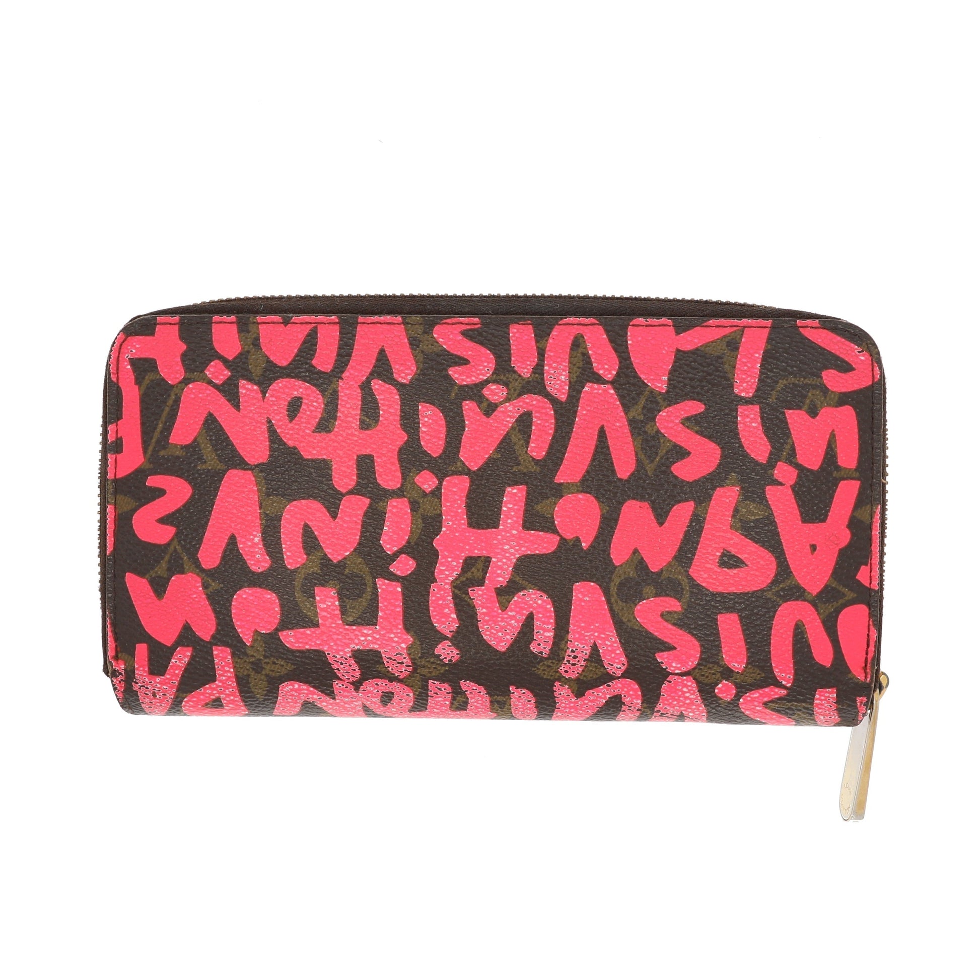 This sleek and simple wallet is beautifully crafted of monogram canvas in Brown, with neon pink graffiti decor