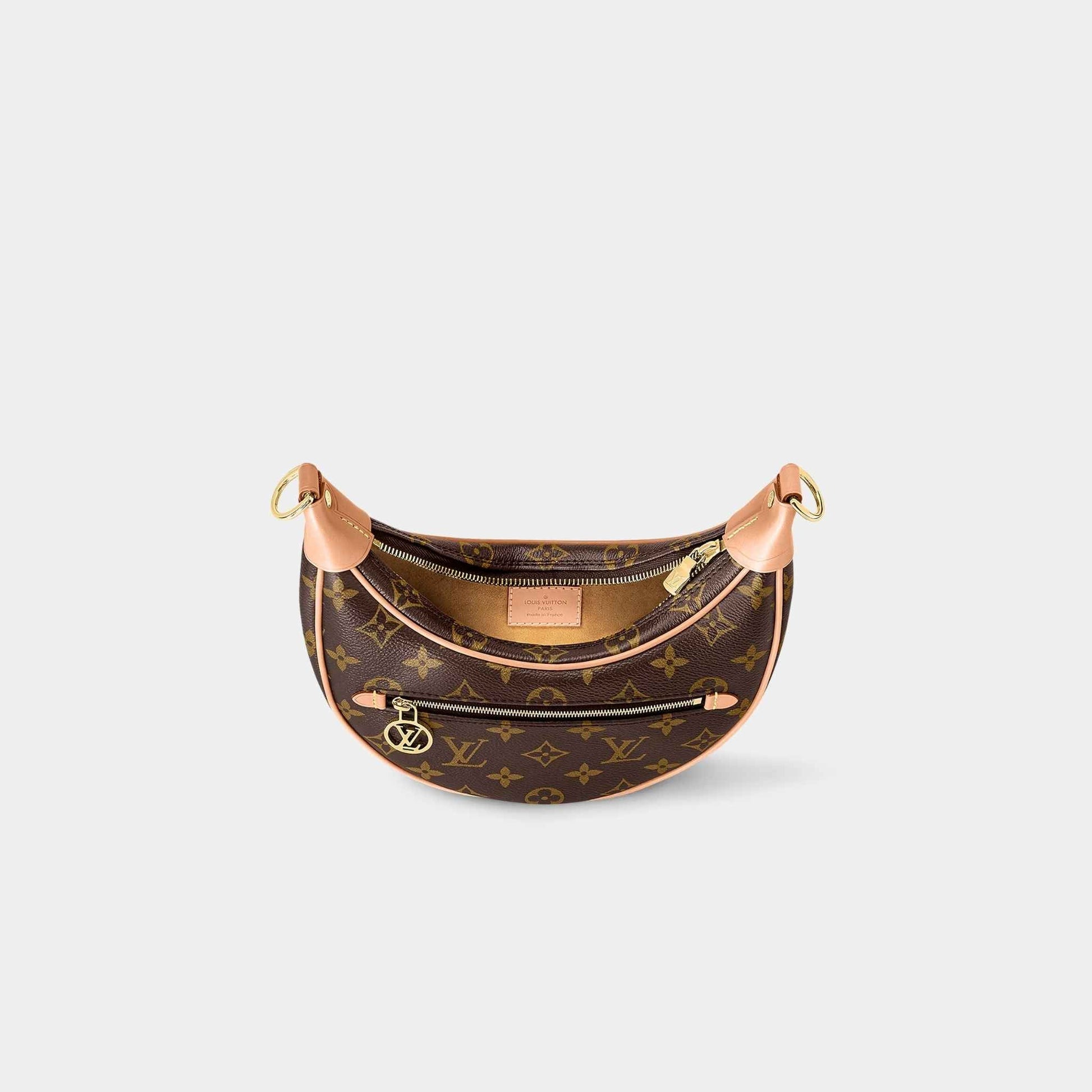 Designed by Nicolas Ghesquière for the Cruise 2022 Collection, the Louis Vuitton Loop Shoulder Bag is a modern reinterpretation of the Croissant bag from the House archives. This half-moon baguette bag combines elegance with versatility, offering both a structured yet body-friendly silhouette. Crafted in Monogram coated canvas, it features gold-tone hardware and a natural cowhide leather trim, creating a timeless aesthetic that is perfect for day-to-night wear.
