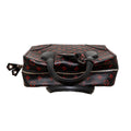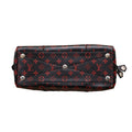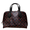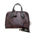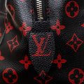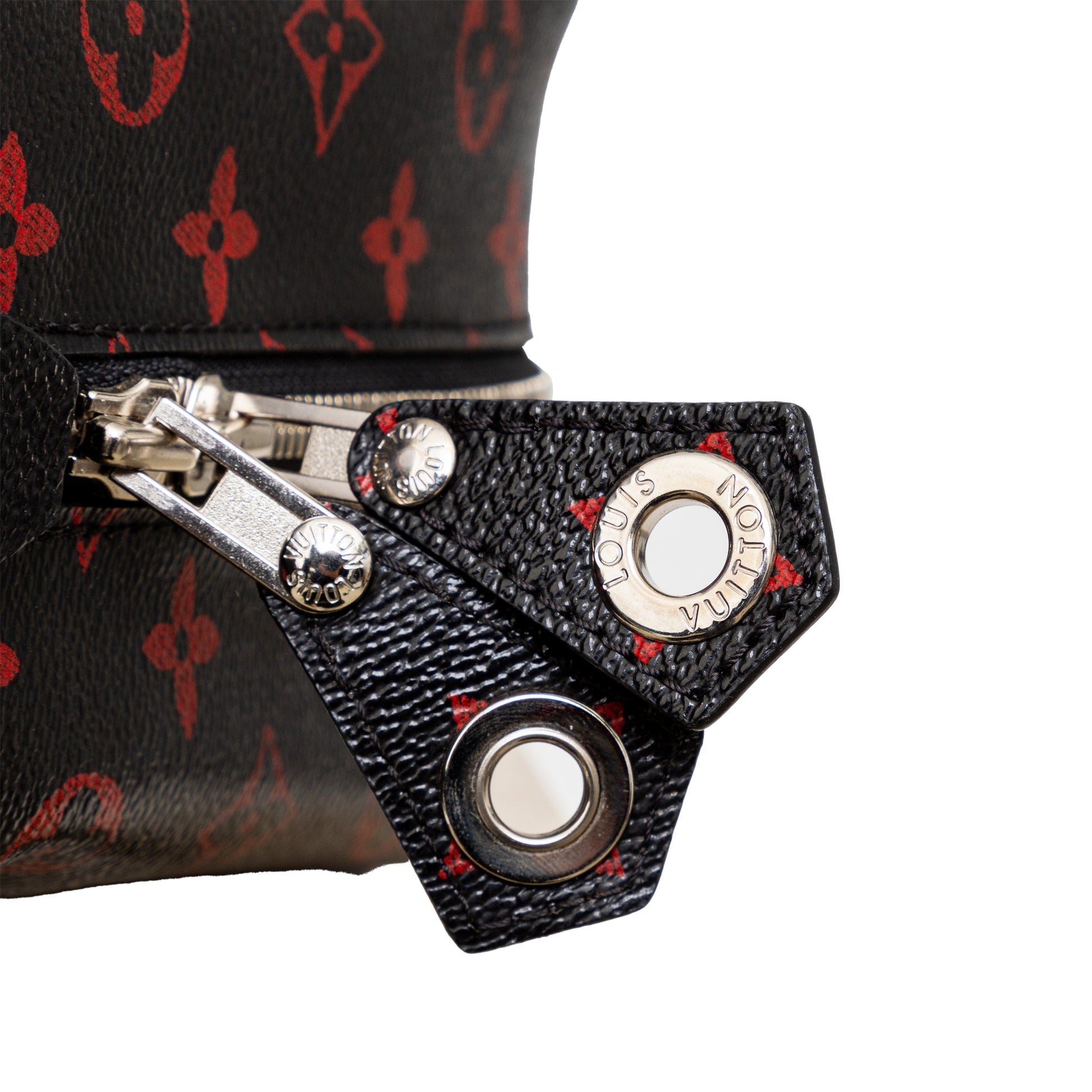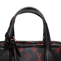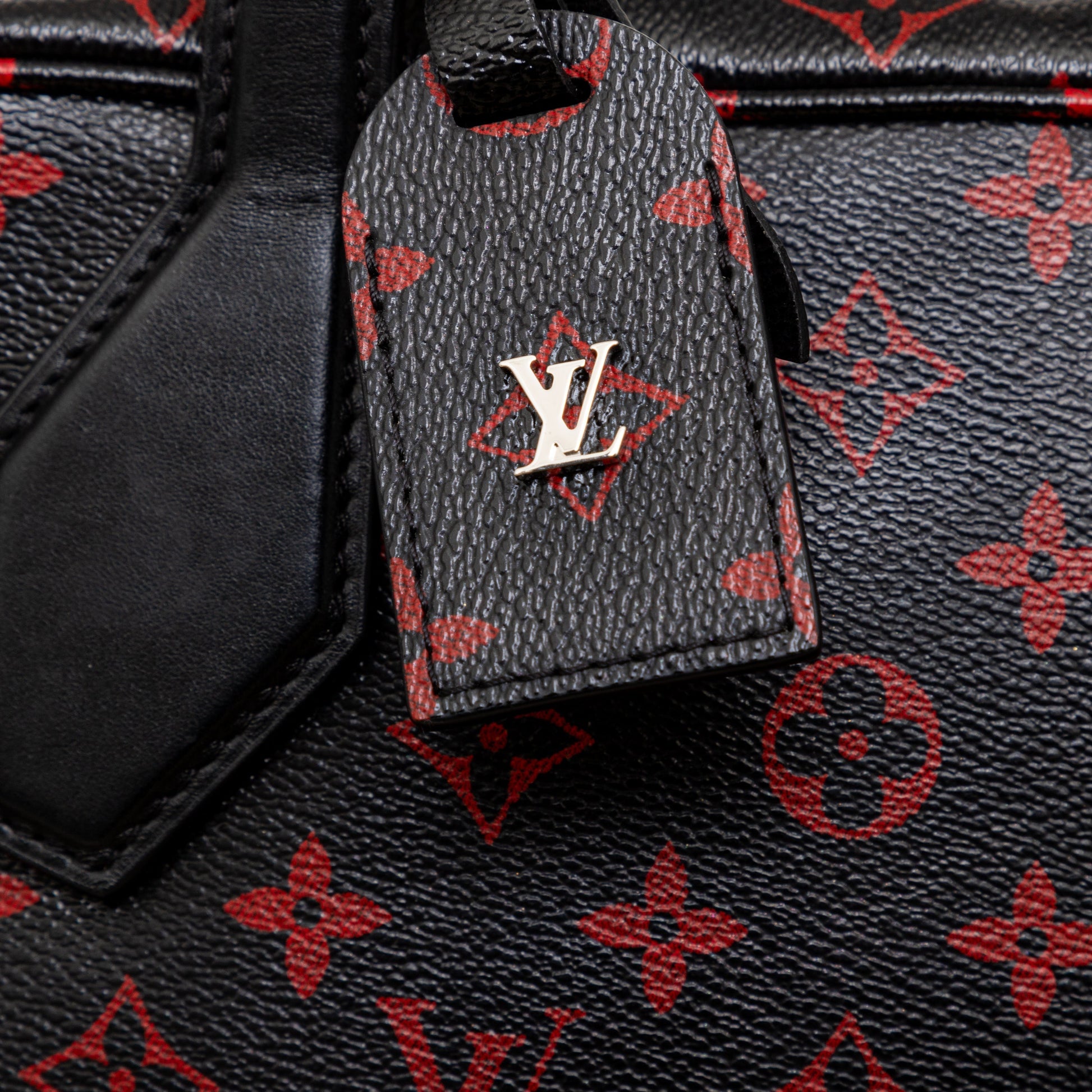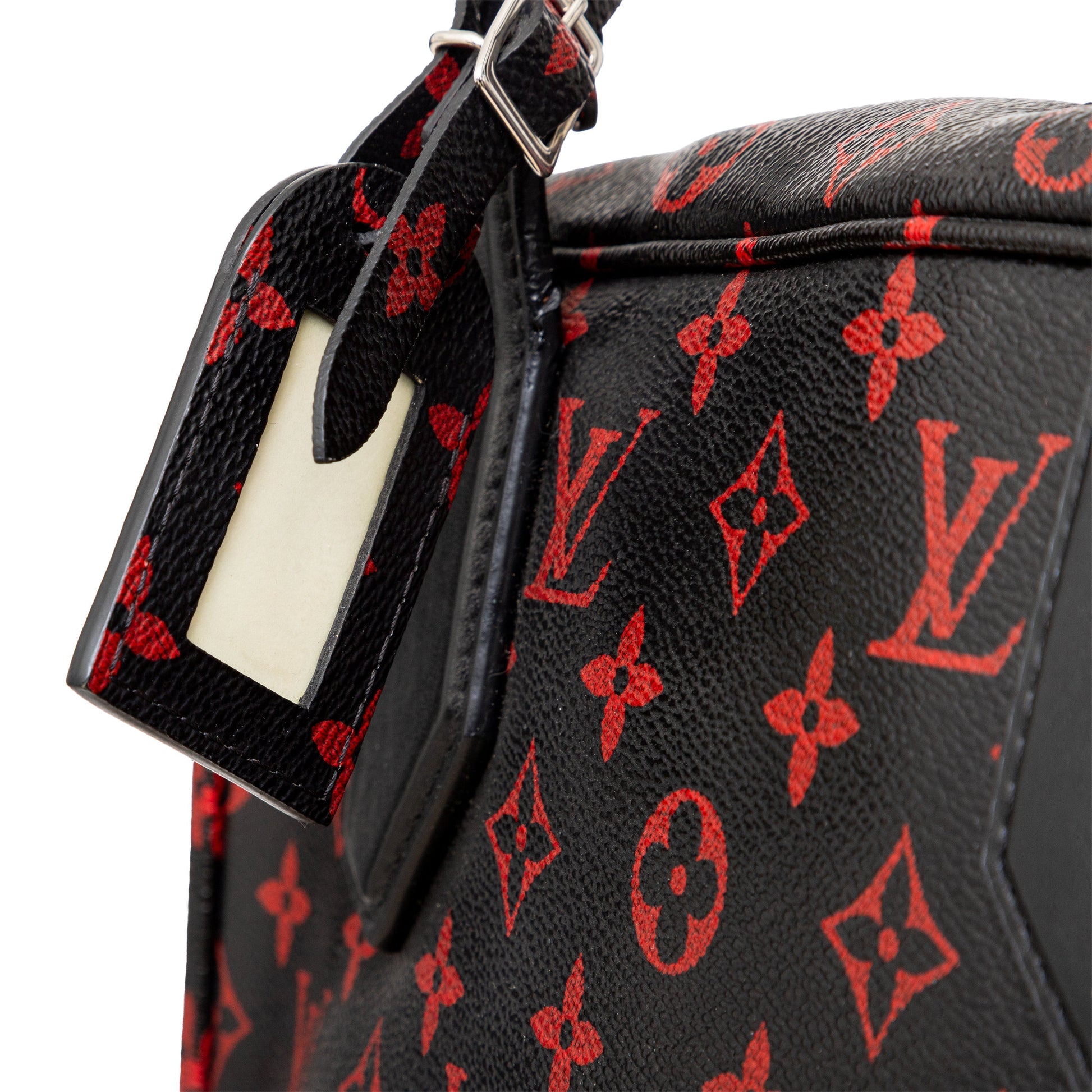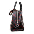 With a shiny black coated canvas and deep red monogram print, this bag combines history and modern design.