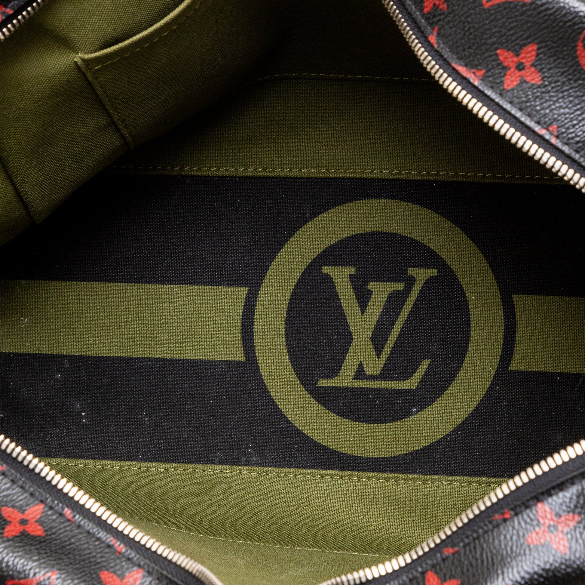 Features include olive green lining with LV logo, palladium hardware eyelets and a small metal LV signature on the luggage tag.