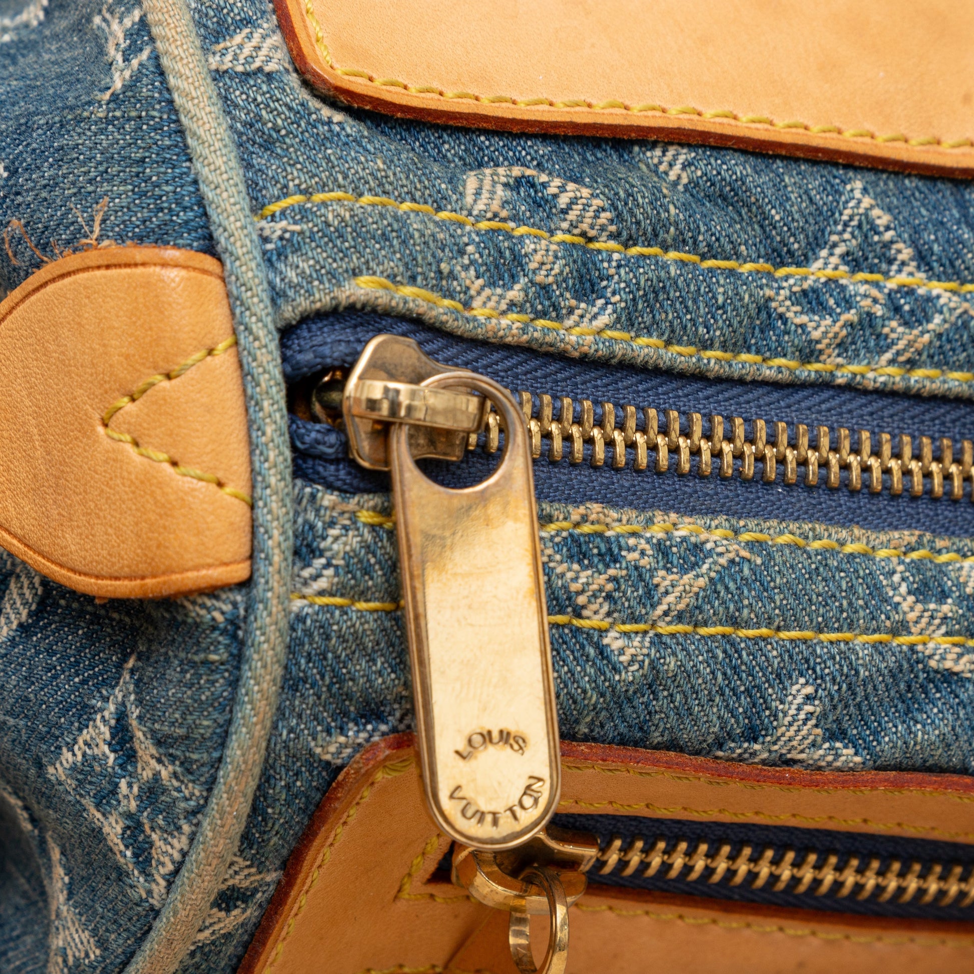 Expertly crafted with durable blue monogram denim canvas and luxurious beige leather, the Louis Vuitton Neo Speedy Monogram Denim Handbag effortlessly combines style and functionality.