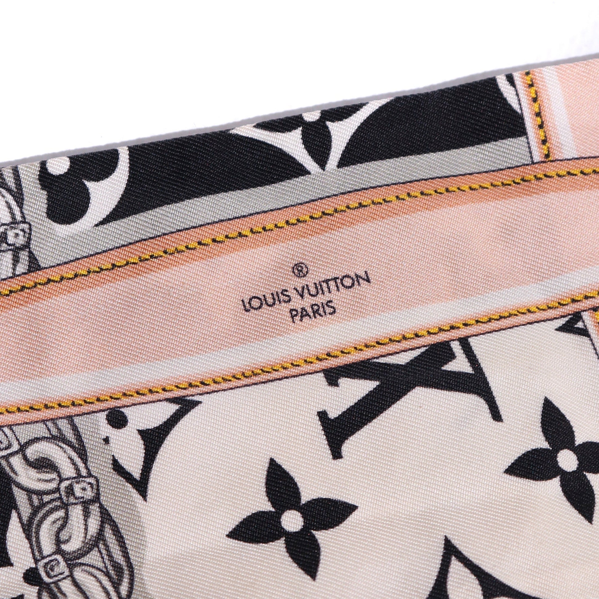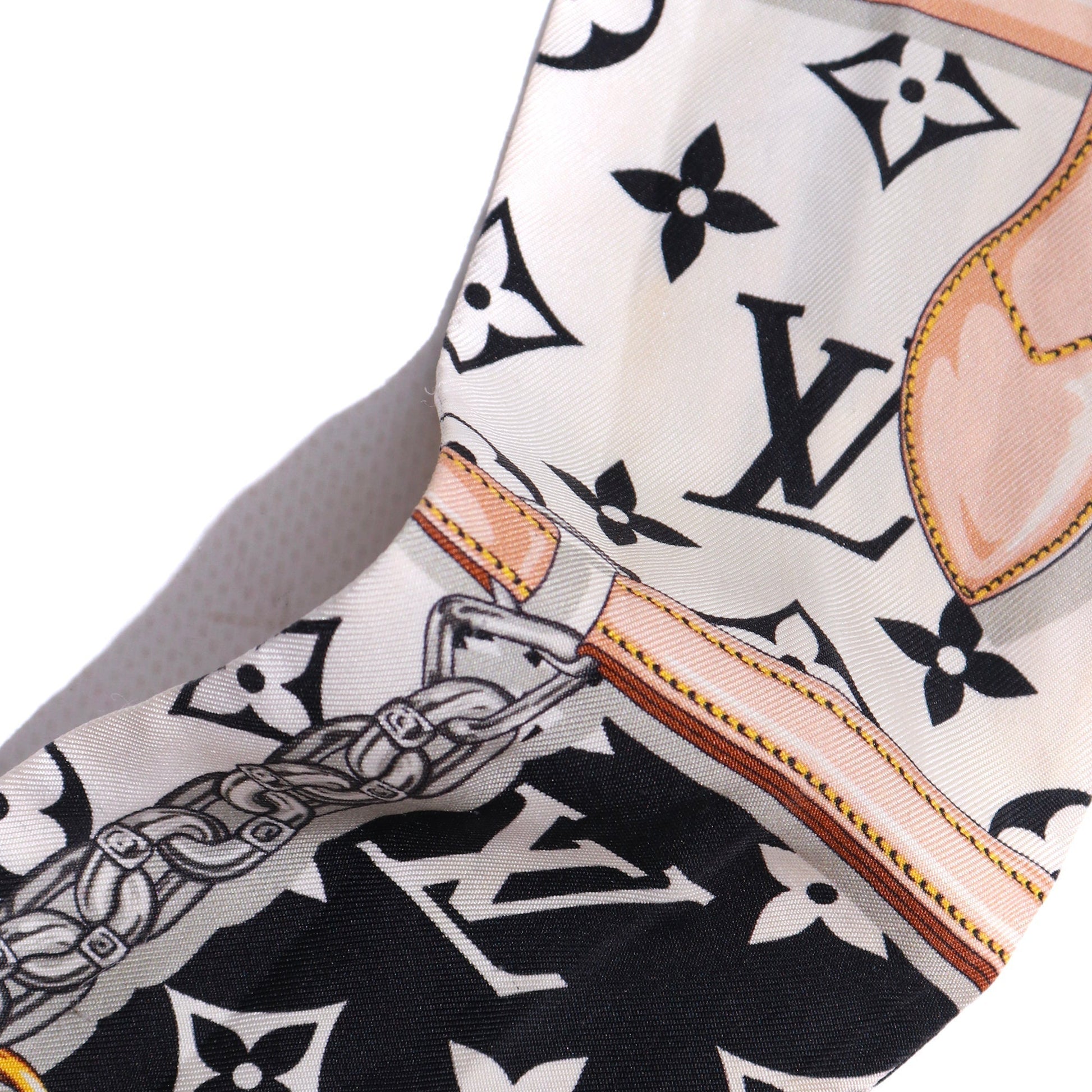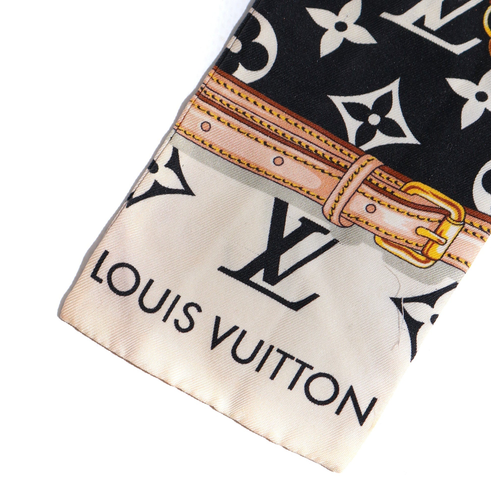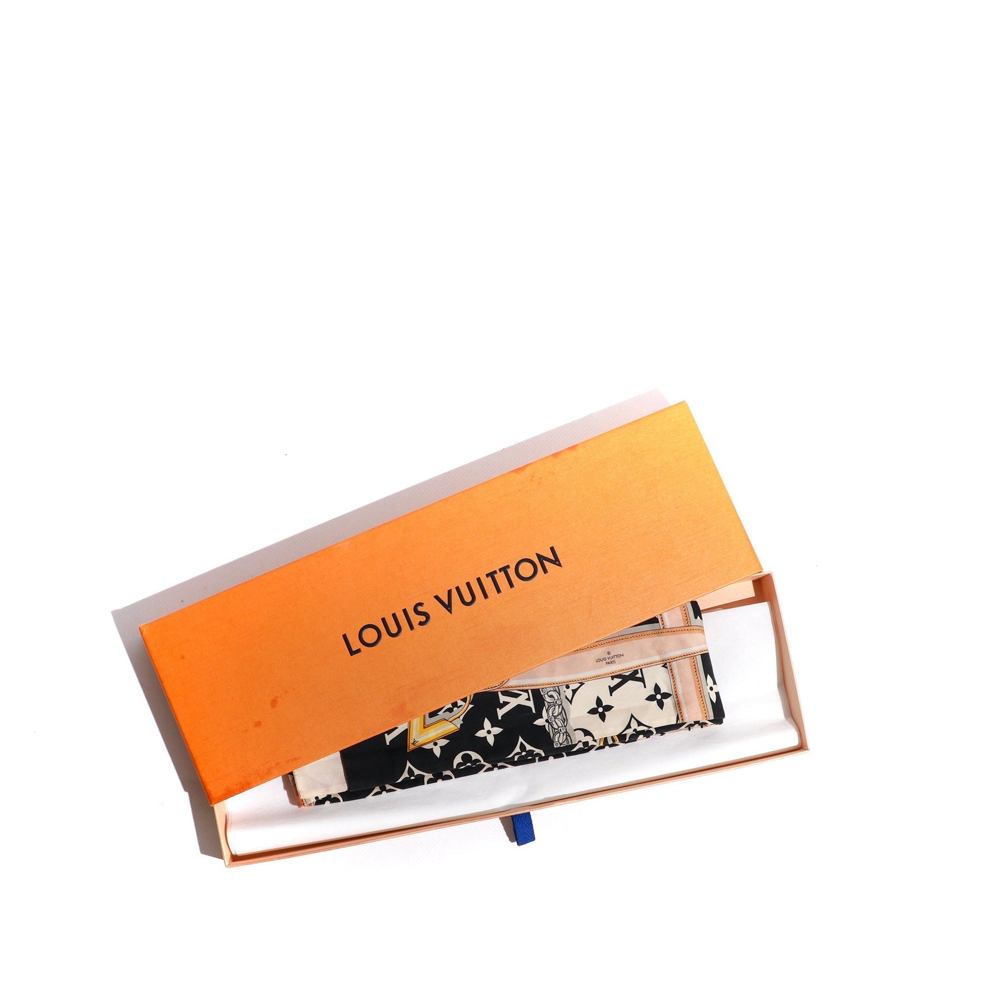 Model: Silk twilly Material: Silk Color: Black | White LOUIS VUITTON Logo Dimensions: 120 x 8 cm Some marks and discoloration