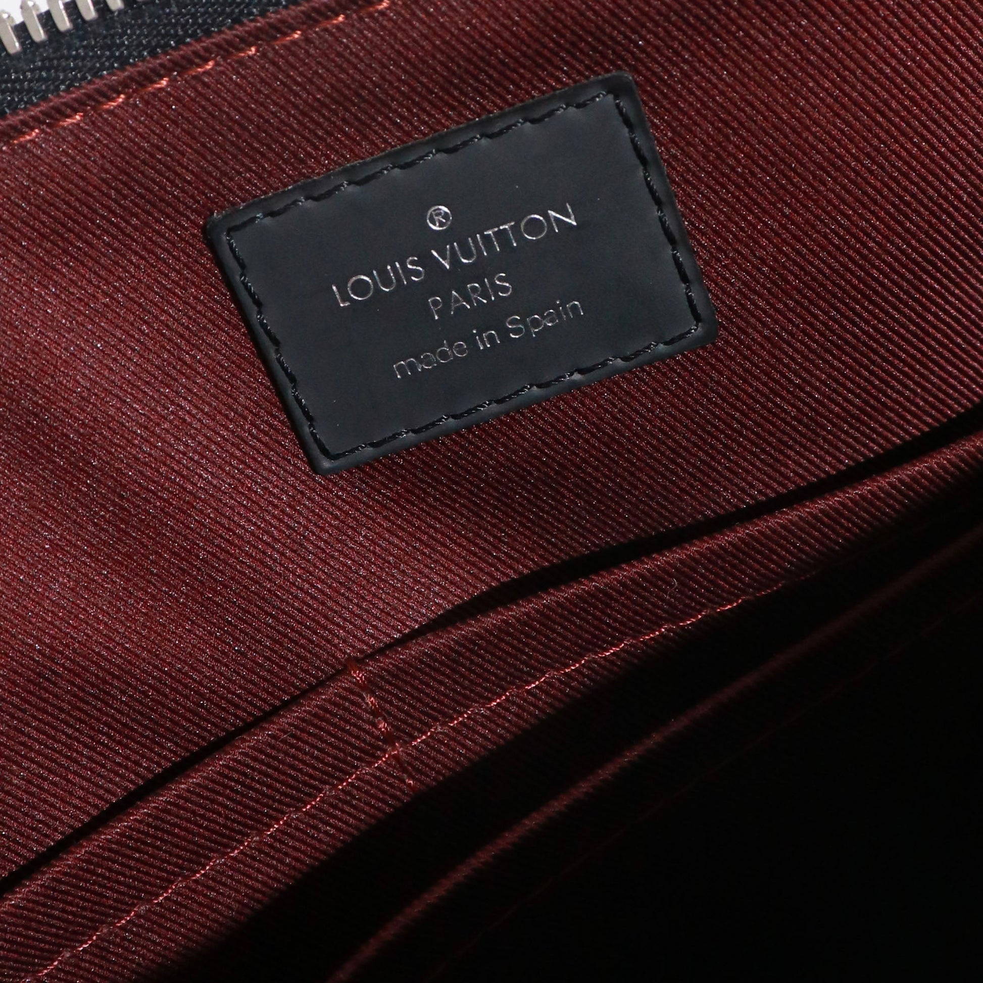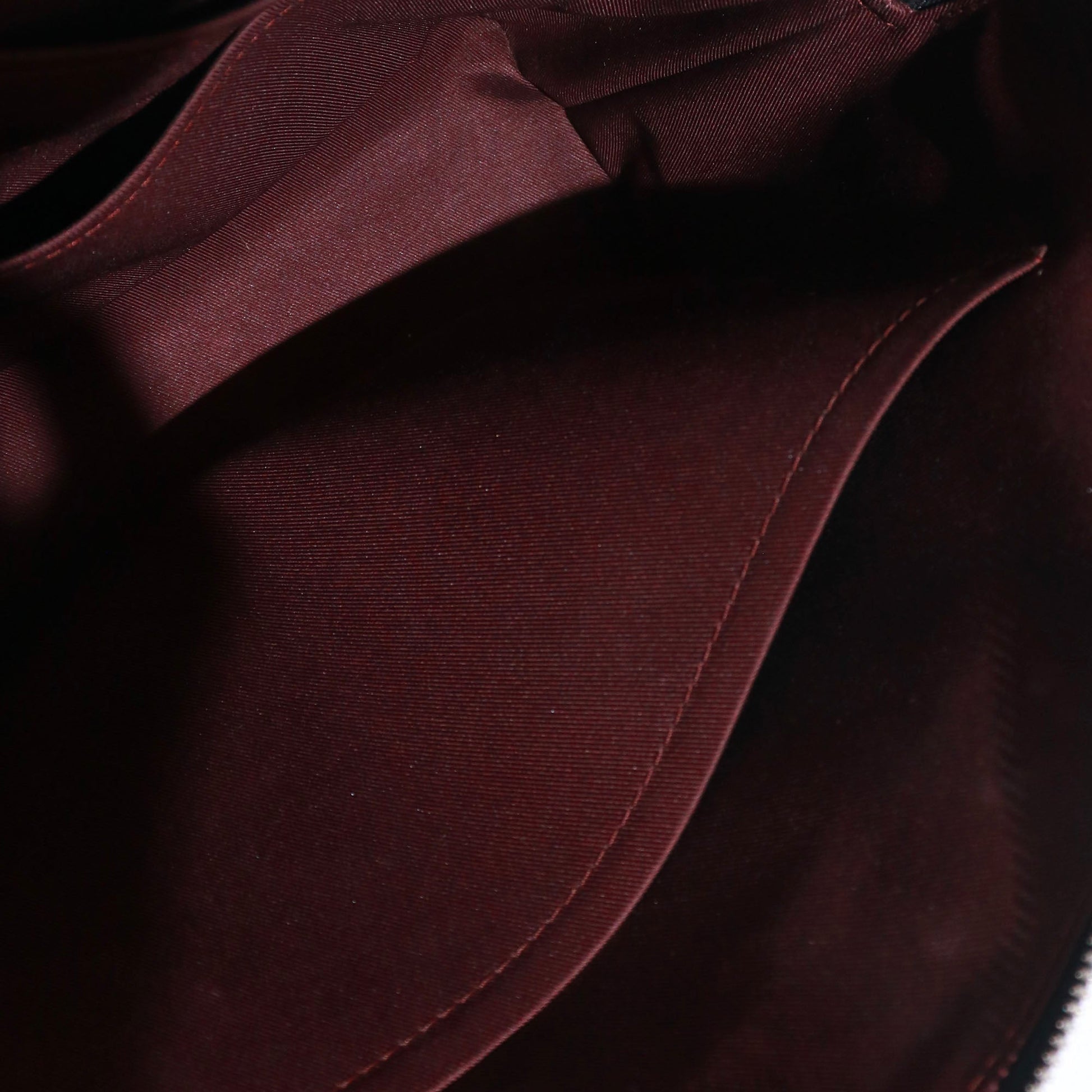 Measurements (CM): 38cm x 30cm x 7cm Silver jewelry Burgundy canvas interior Damaged leather handles