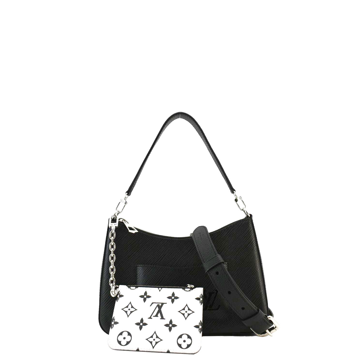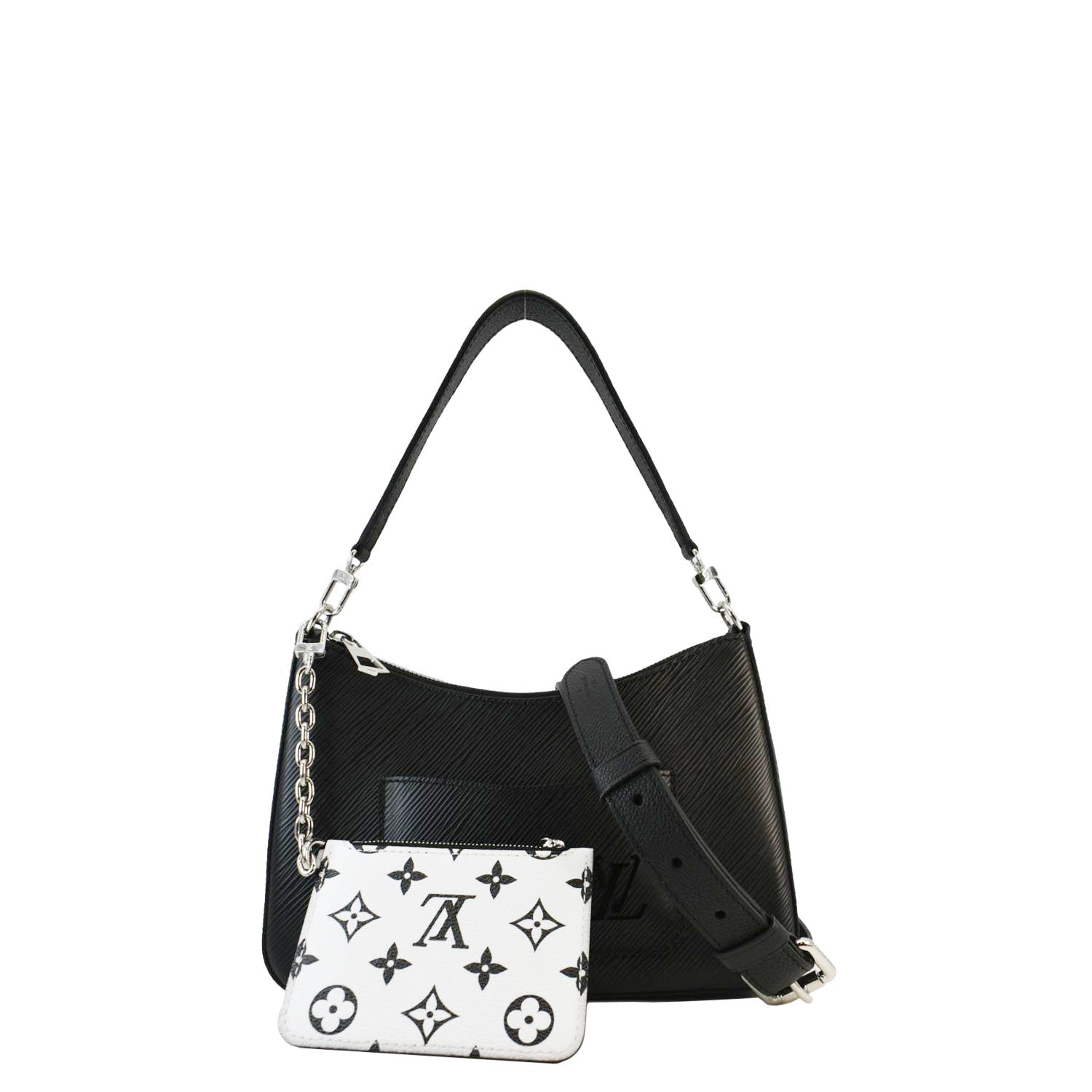The Louis Vuitton Marelle Epi Leather Shoulder Bag in Black showcases the brand's signature textured Epi leather in a sleek, timeless design. This elegant shoulder bag features clean lines and a compact silhouette, perfect for both day and evening wear.