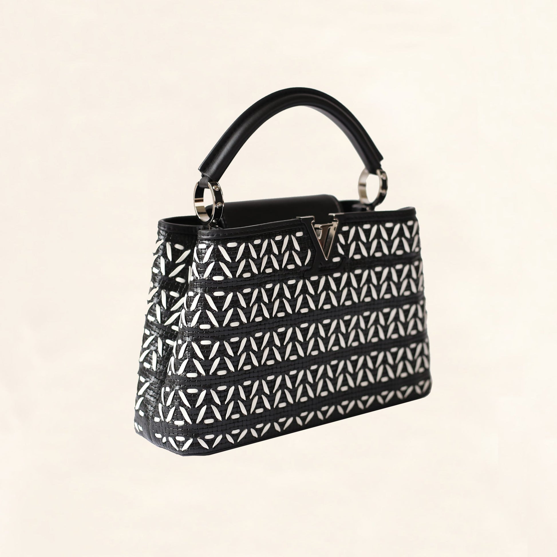 Louis Vuitton | Black and White Plaited Leather Capucines | BB