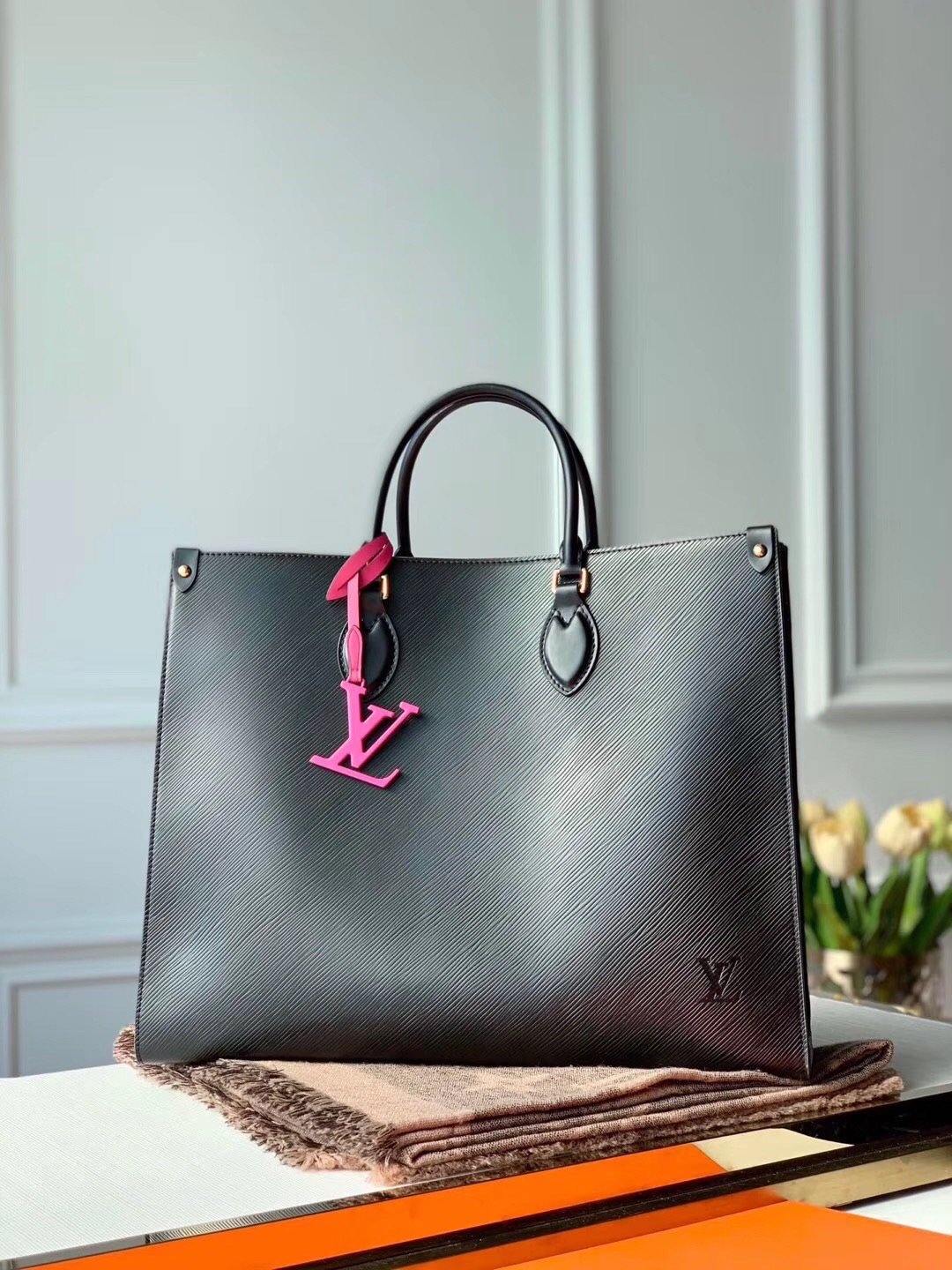 The OnTheGo MM tote Bag is made from Epi grained leather with an inside lining in a contrasting color and accessorized with an eye-catching LV charm. Two sets of handles, long and short, allow hand and shoulder carry, and a roomy interior, which easily fits work essentials, including a laptop, alorae it a versatile everyday Bag.
