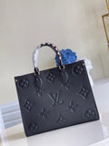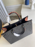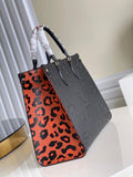 The Onthego MM tote comes from the Fall 2021 Wild at Heart capsule. Made from Monogram Empreinte embossed leather, it features a glossy Monogram motif and leopard-print sides. Fitted with braided top handles as well as longer leather straps, the Bag adapts to a variety of carry styles. True to its name, it easily holds a woman’s daily essentials.