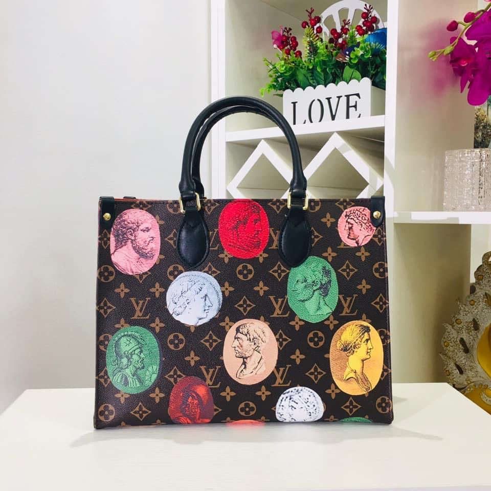 For Fall-Winter 2021, the versatile OnTheGo tote is offered in Monogram Cameo canvas, an exclusive print from the LVxFornasetti capsule. Vibrantly colored cameos overlay the iconic House pattern: the images are based on antique coins from the Fornasetti archive. Stylish and practical, this carryall is fitted with Toron top handles and long shoulder straps, for multiple carry options.