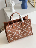 This Onthego MM tote features a stitched motif that echoes the quilted interior of Louis Vuitton’s original trunks. The Monogram Empreinte leather is first printed, then embossed and embroidered with the pattern, to create a rich, crafted effect. A statement piece of the season, the Bag is a versatile companion that lends itself to a variety of carry styles.