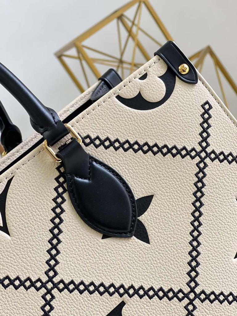 This Onthego MM tote features a stitched motif that echoes the quilted interior of Louis Vuitton’s original trunks. The Monogram Empreinte leather is first printed, then embossed and embroidered with the pattern, to create a rich, crafted effect. A statement piece of the season, the Bag is a versatile companion that lends itself to a variety of carry styles.