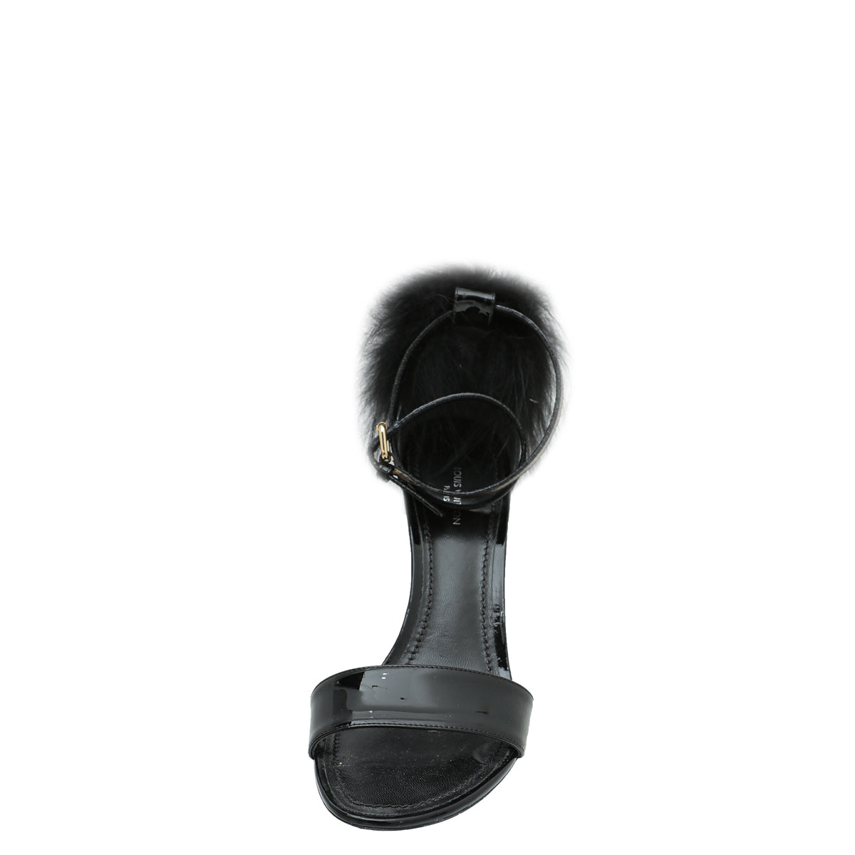 - Material: Black Patent Leather with Monogram Coated Canvas and Fur Trim