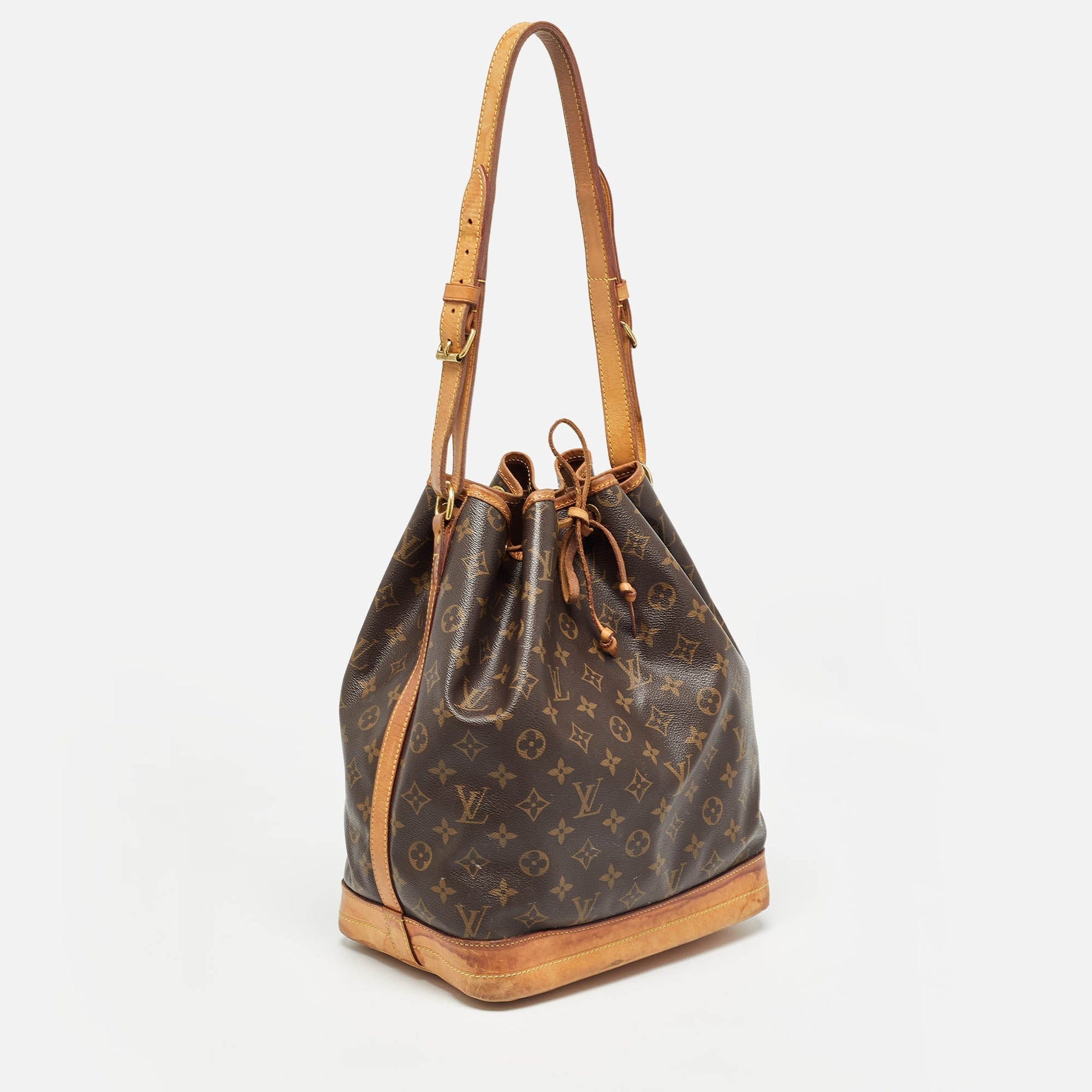 Created in 1932 by Louis Vuitton to carry bottles of Champagne, the iconic Noe now serves as a stylish daytime handbag. Crafted from Monogram canvas, the bag exudes just the right amount of sophistication. It has a single adjustable strap with gold tone buckles, a drawstring fastening, and a fabric lined interior. This piece is an ideal buy