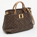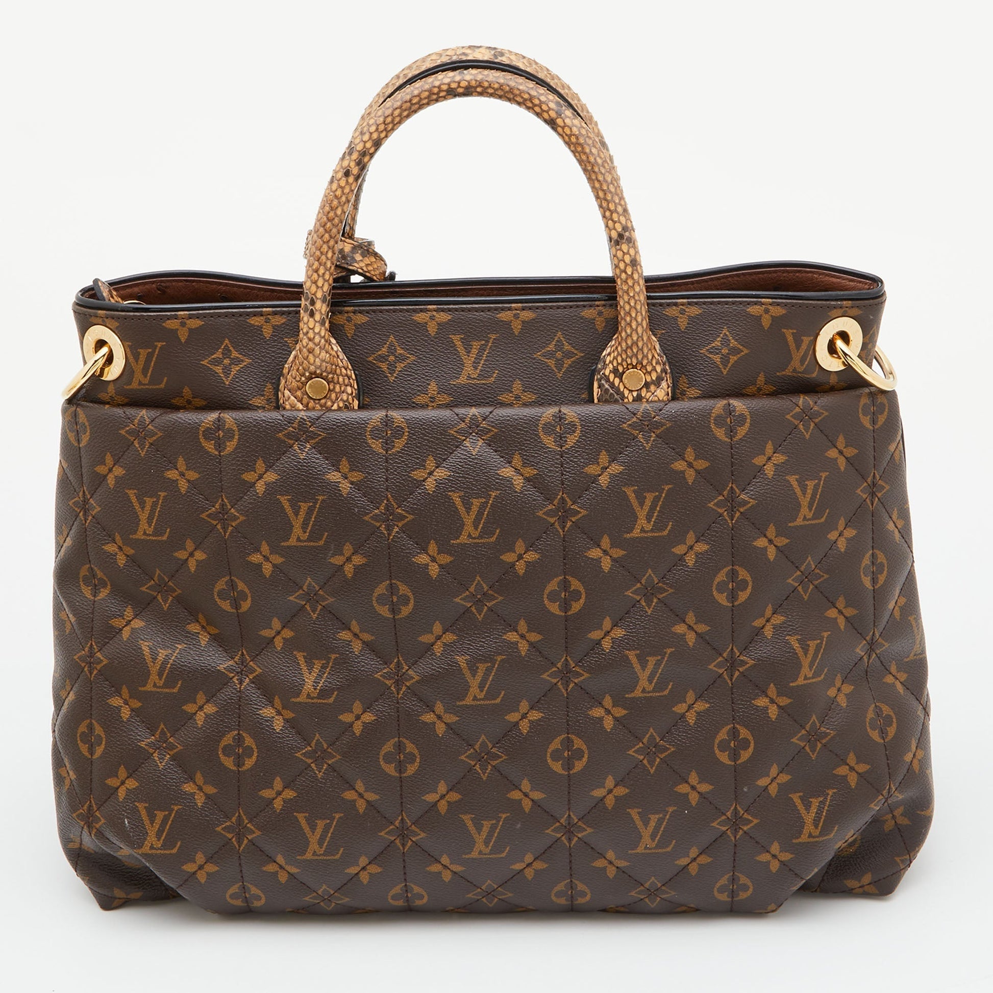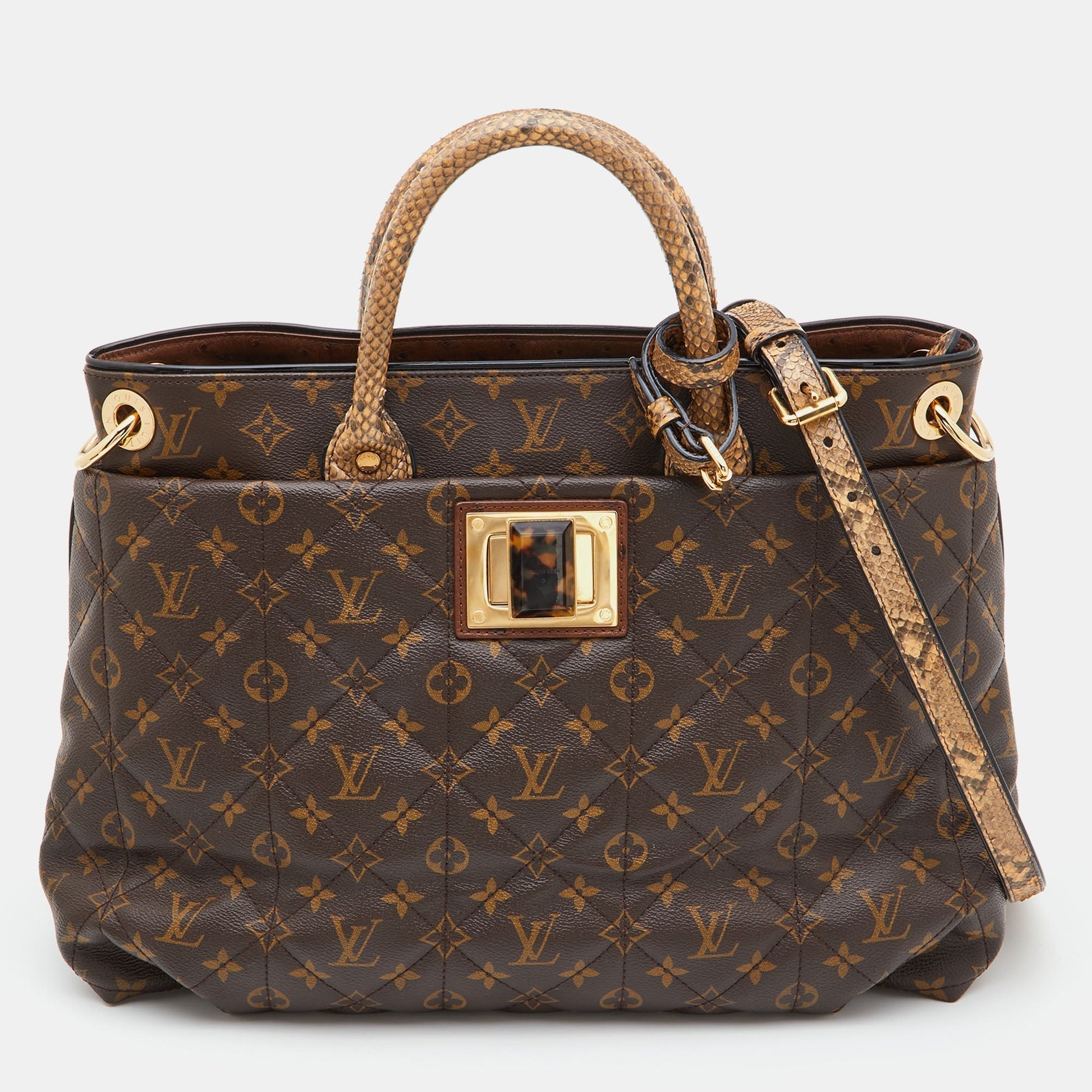The luxurious and rare edition of the Etoile Exotique GM Bag from Louis Vuitton is crafted in the signature LV Monogram canvas. The tote comes equipped with python top handles and a shoulder strap that can be removed. Gold tone hardware lends it a lovely finish.
