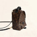 Characteristics: This mini backpack features a body of sturdy monogram coated canvas with a black calfskin trim and a front zipped pocket. The backpack is reinforced with strong cowhide leather including a top handle, and an adjustable and removable shoulder straps. The zipper opens to a nylon fabric with a patch pocket and a D ring.