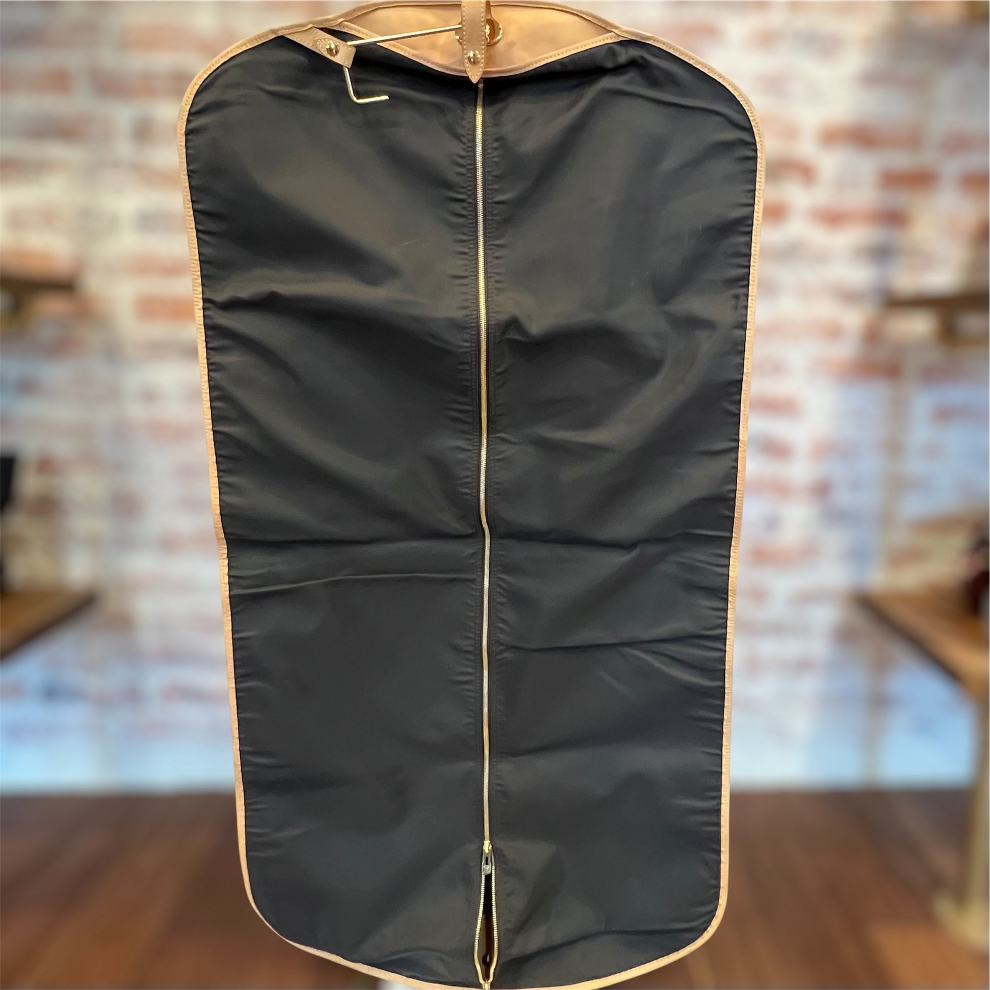 This Louis Vuitton garment cover features the brand's iconic brown monogram coated canvas, designed to protect and preserve your delicate clothing while traveling. Its durable and sophisticated construction offers both style and practicality for your wardrobe storage needs. B+ Very Good Condition