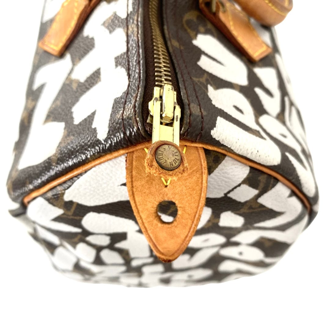 Condition: 7.5/10 Good Vintage. Light rubbing and discoloration to corners & exterior edges. Medium patina, discoloration & water marks to leather. Minor stain to interior. Missing leather pull tab to zipper.