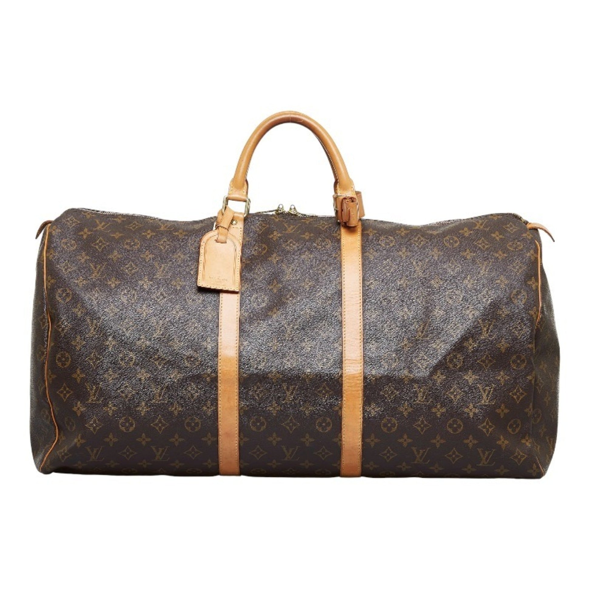 LOUIS VUITTON Monogram Keepall 60 Boston Bag M41422 Brown PVC Leather Ladies