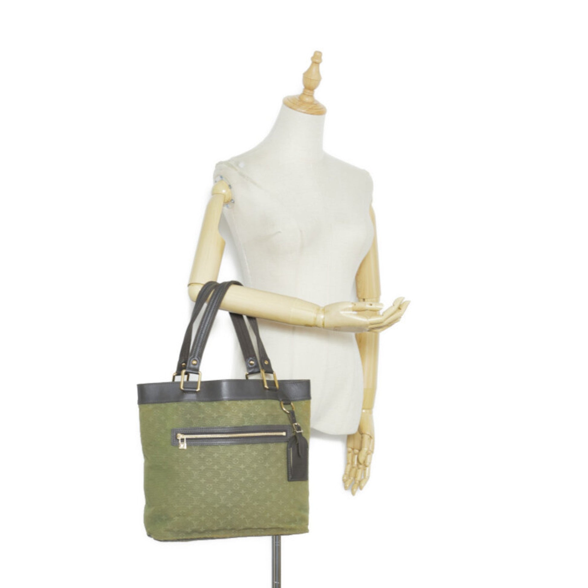 LOUIS VUITTON Monogram Lucile GM Tote Bag Shoulder M92681 Green Dark Brown Canvas Leather Women's