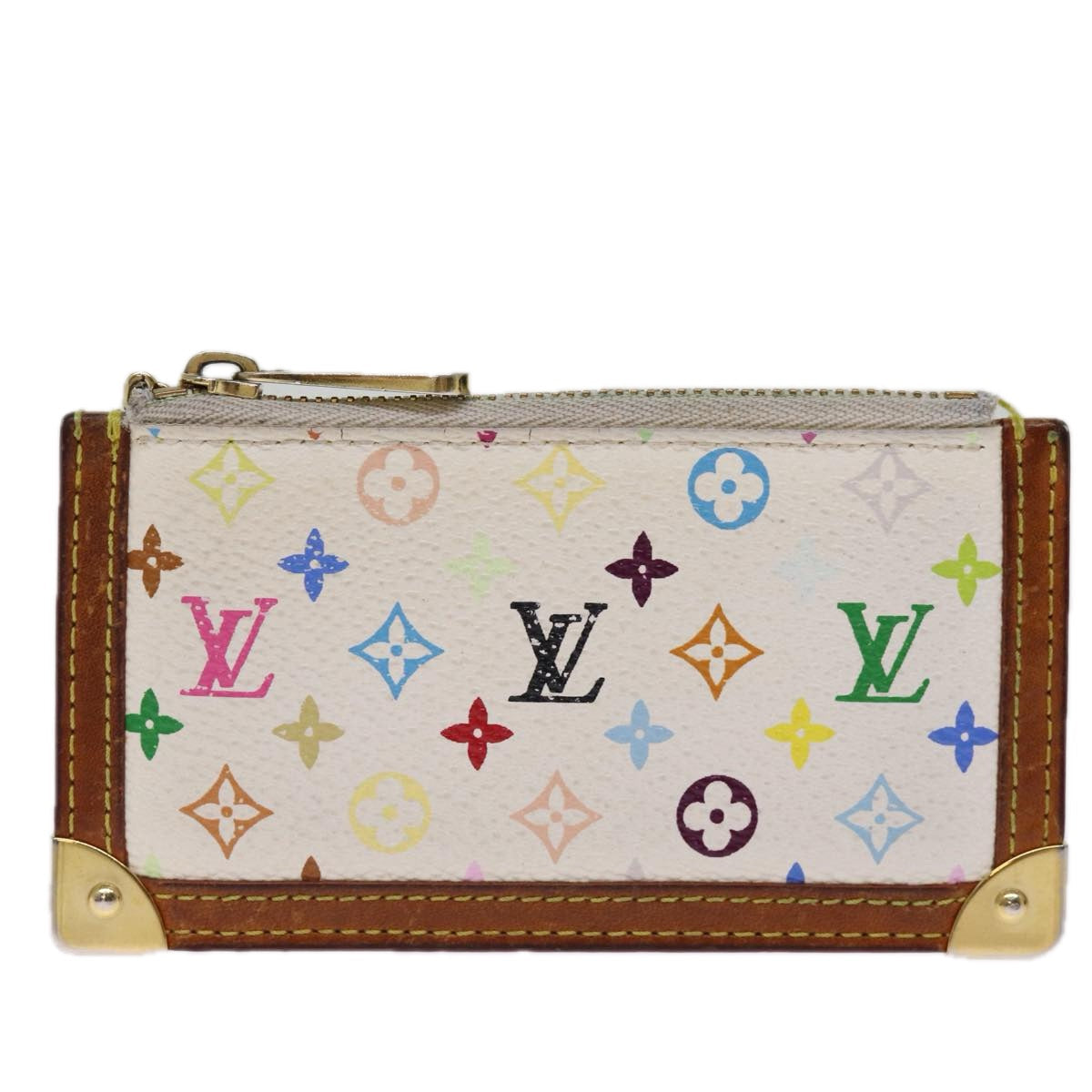LOUIS VUITTON Monogram Multicolor Pochette Cles Purse White M92655 Auth 75047