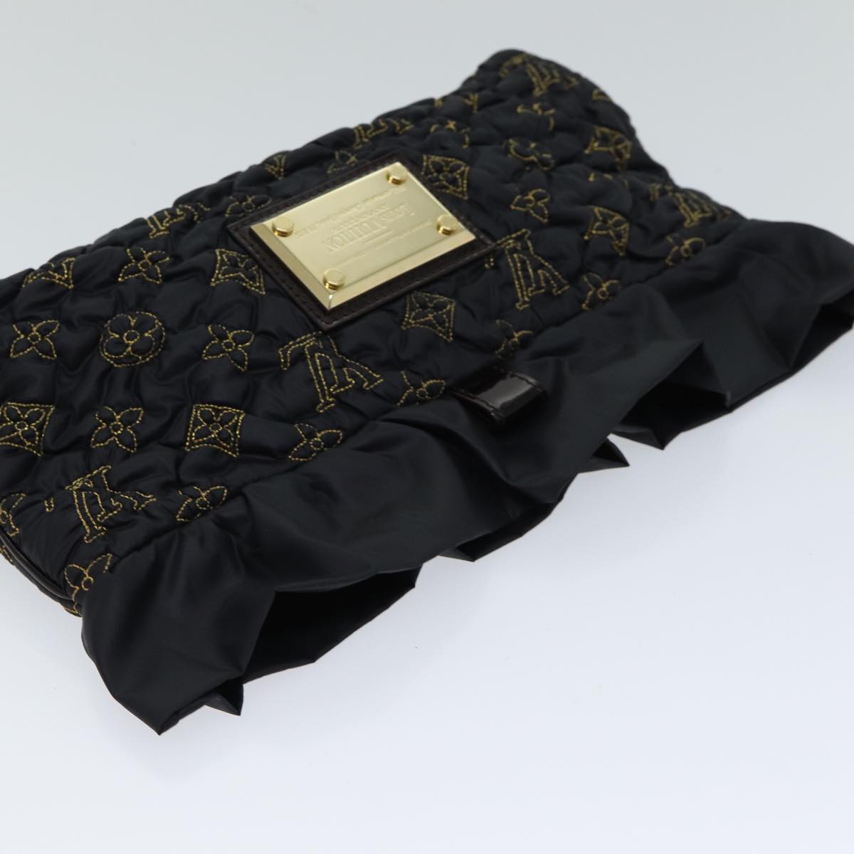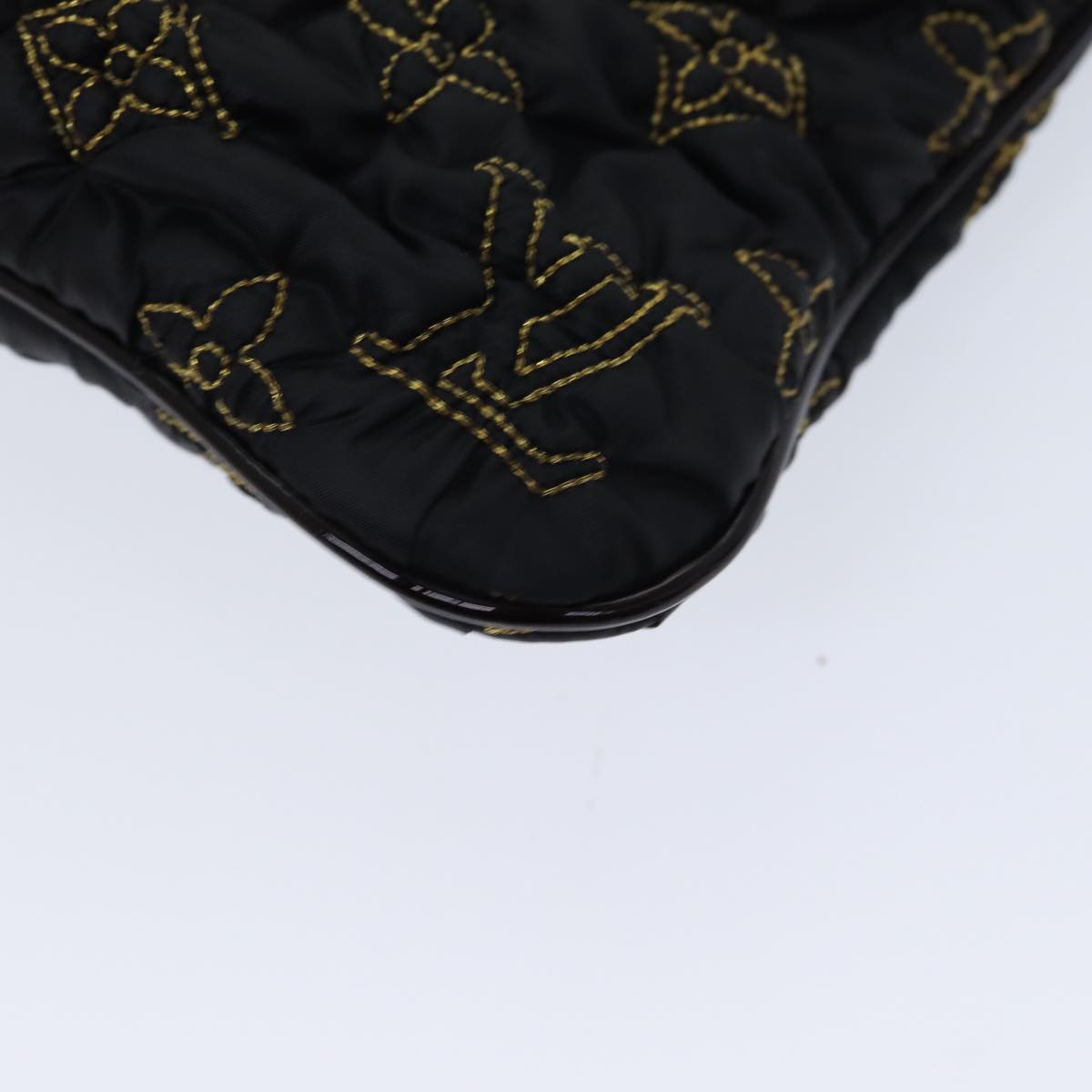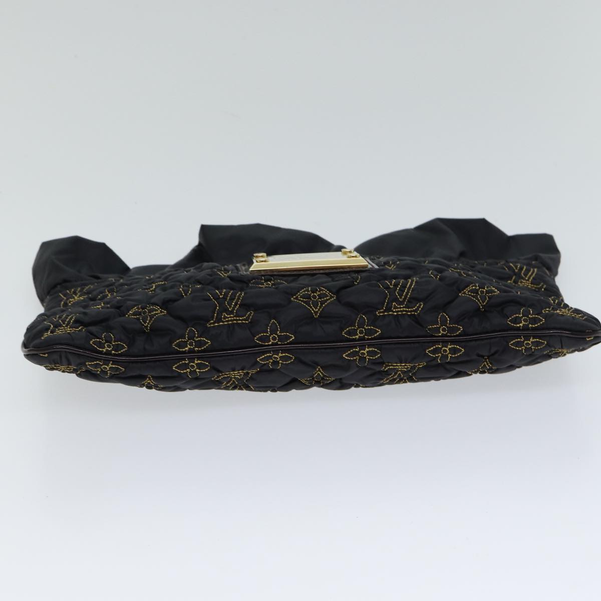 LOUIS VUITTON Monogram Satin Pochette Devi MM Clutch Bag Black M93196 Auth 72333