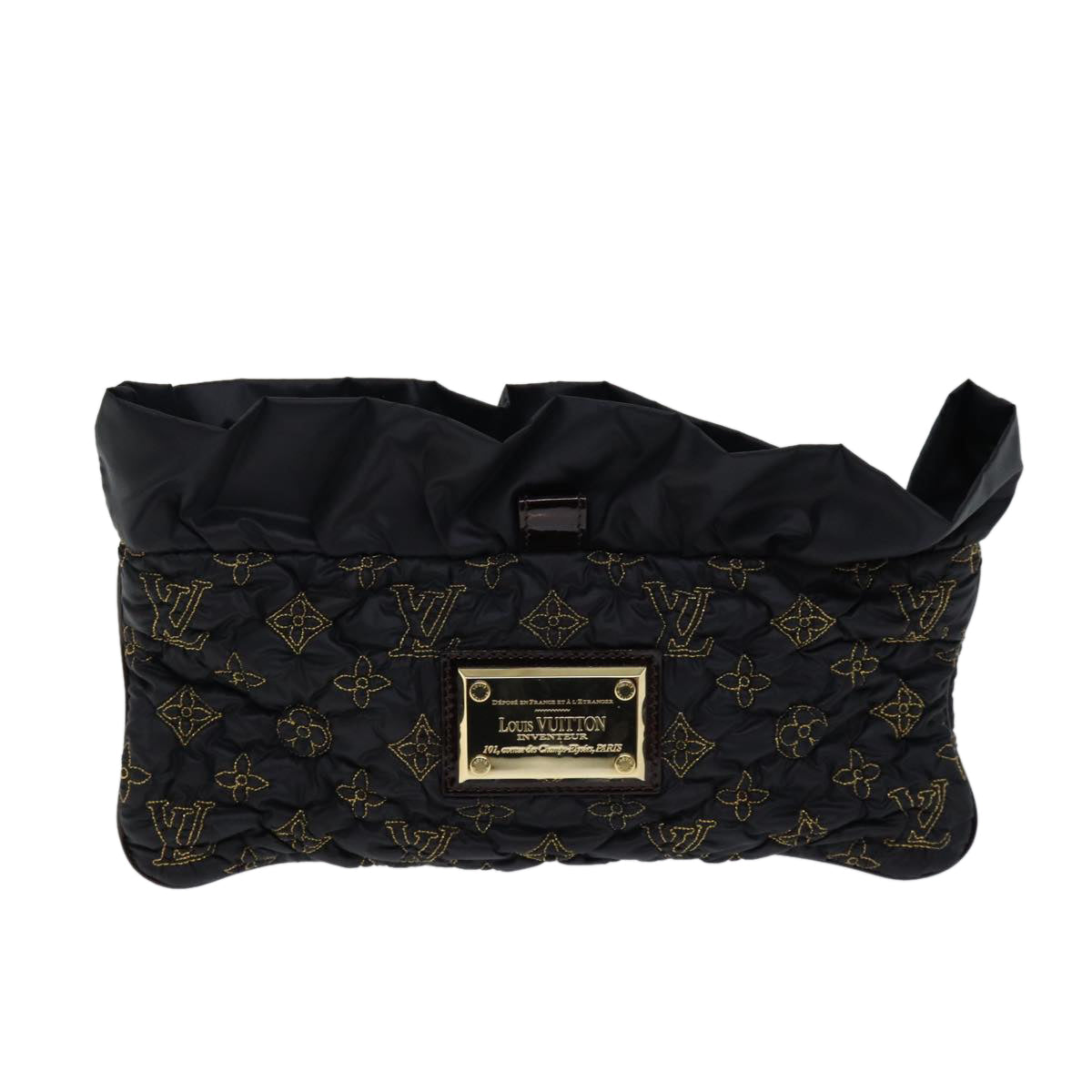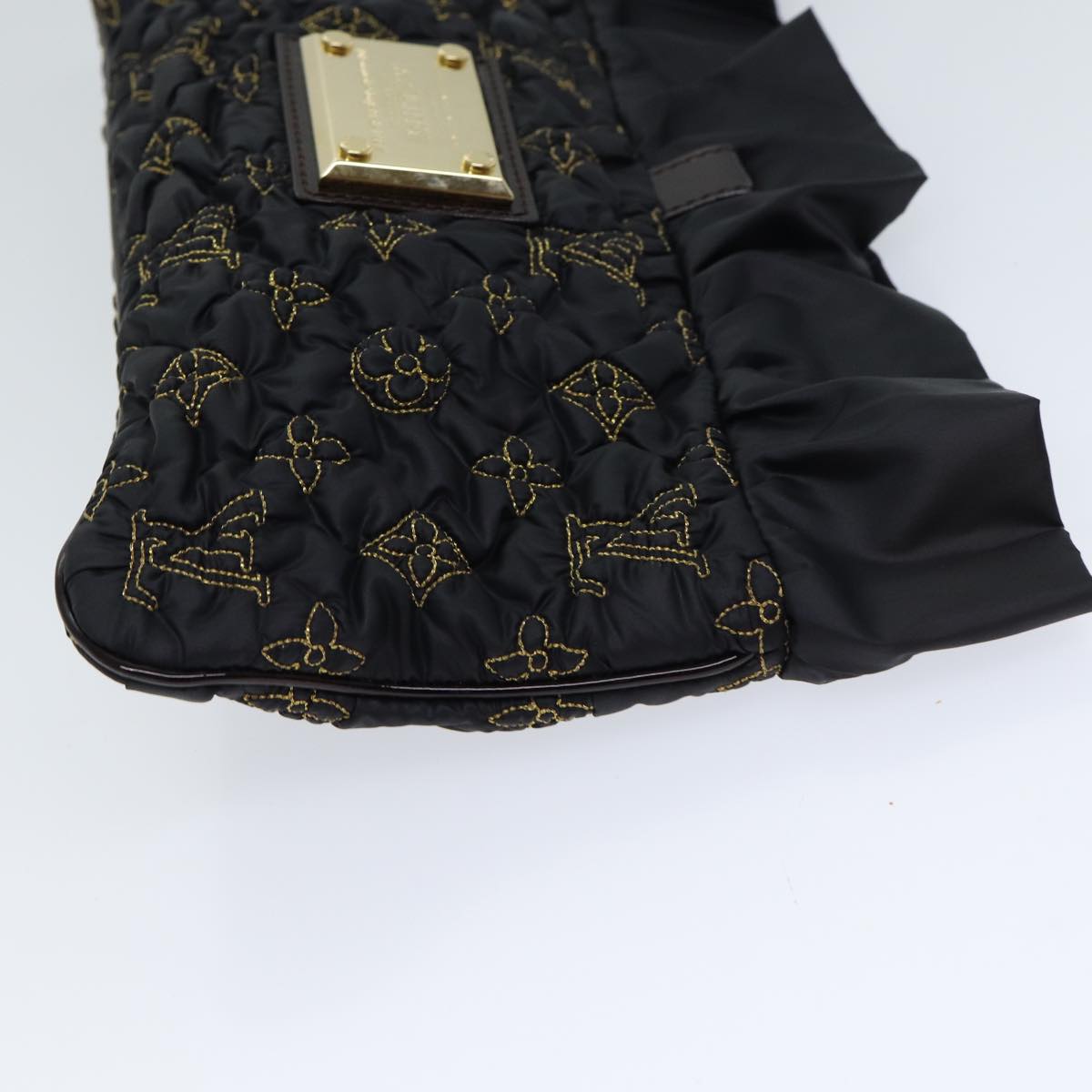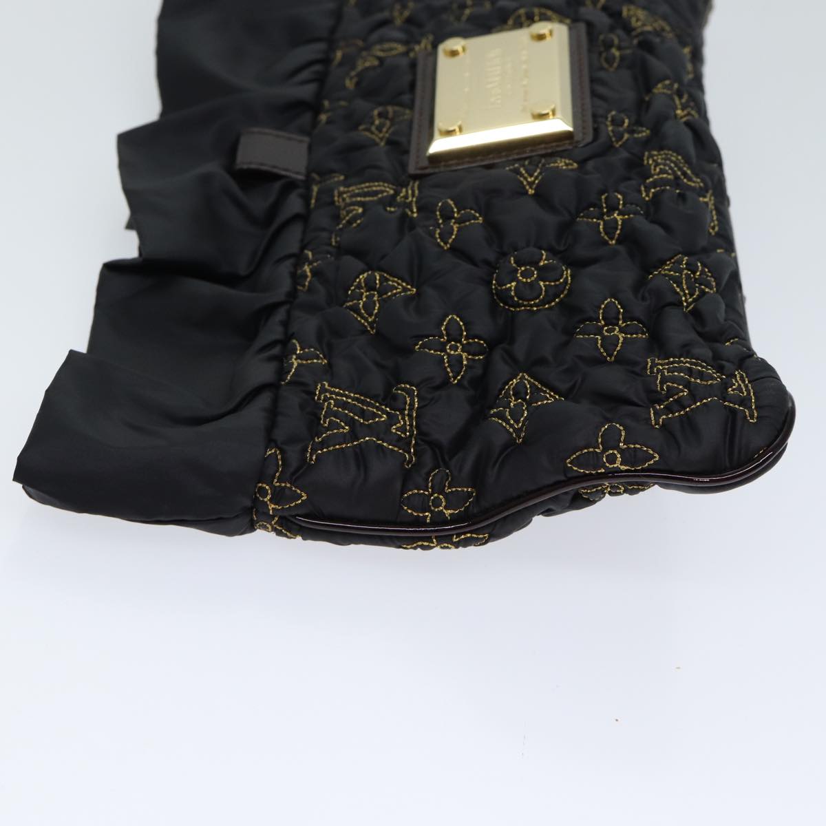 LOUIS VUITTON Monogram Satin Pochette Devi MM Clutch Bag Black M93196 Auth 72333