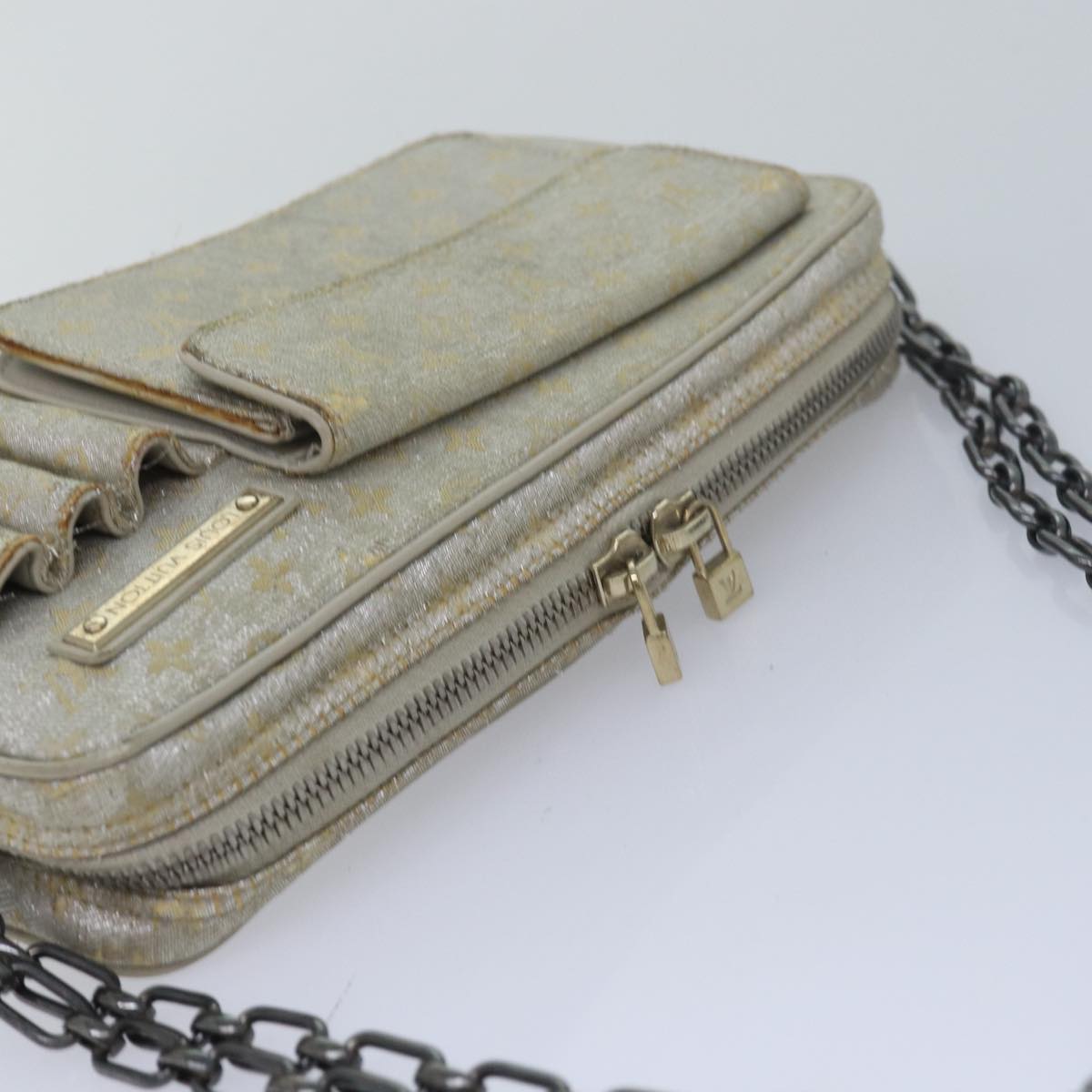 LOUIS VUITTON Monogram Shine Chain McKenna Bag Silver M92362 LV Auth bs16213