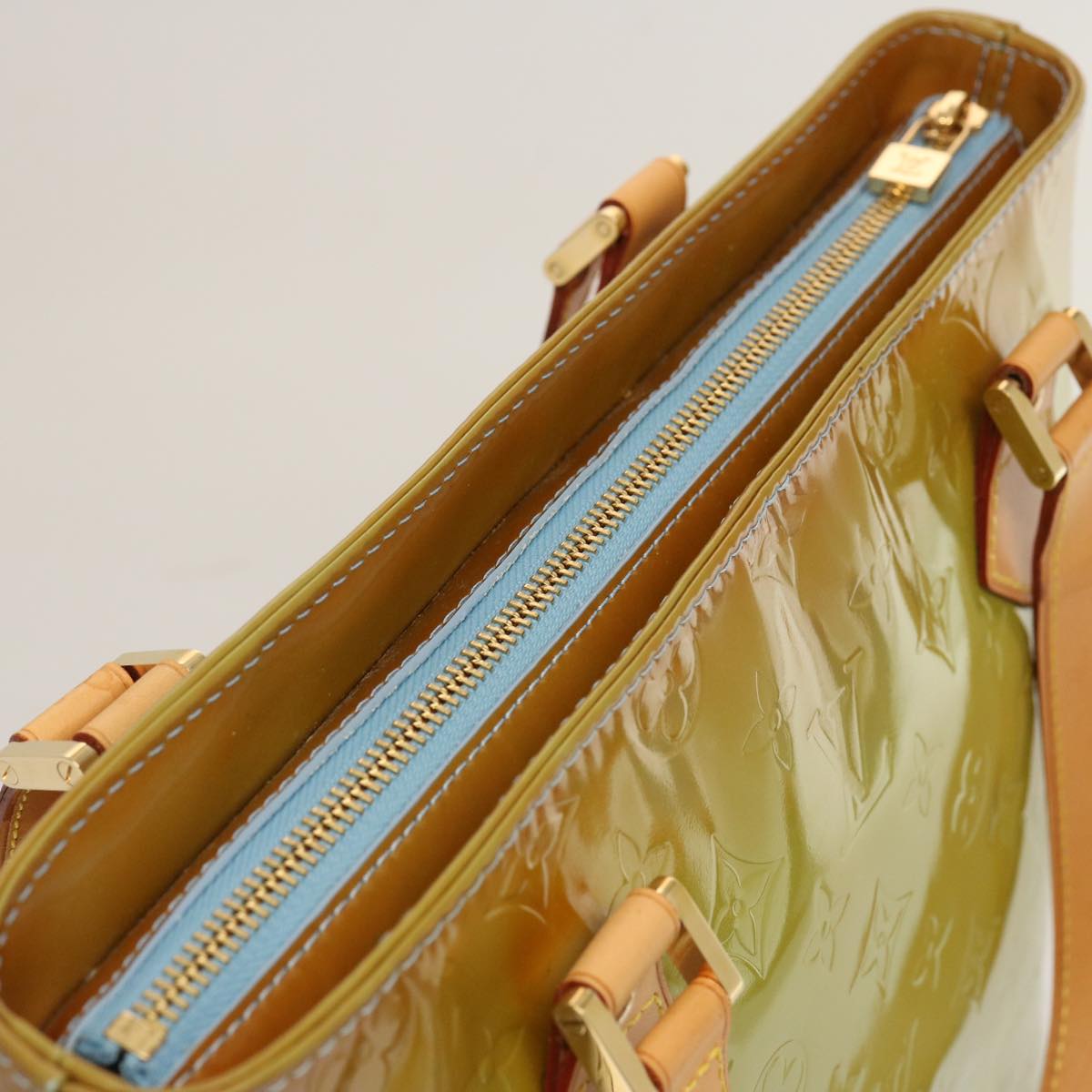 LOUIS VUITTON Monogram Vernis Houston Hand Bag Baby Blue M91005 LV Auth 74142