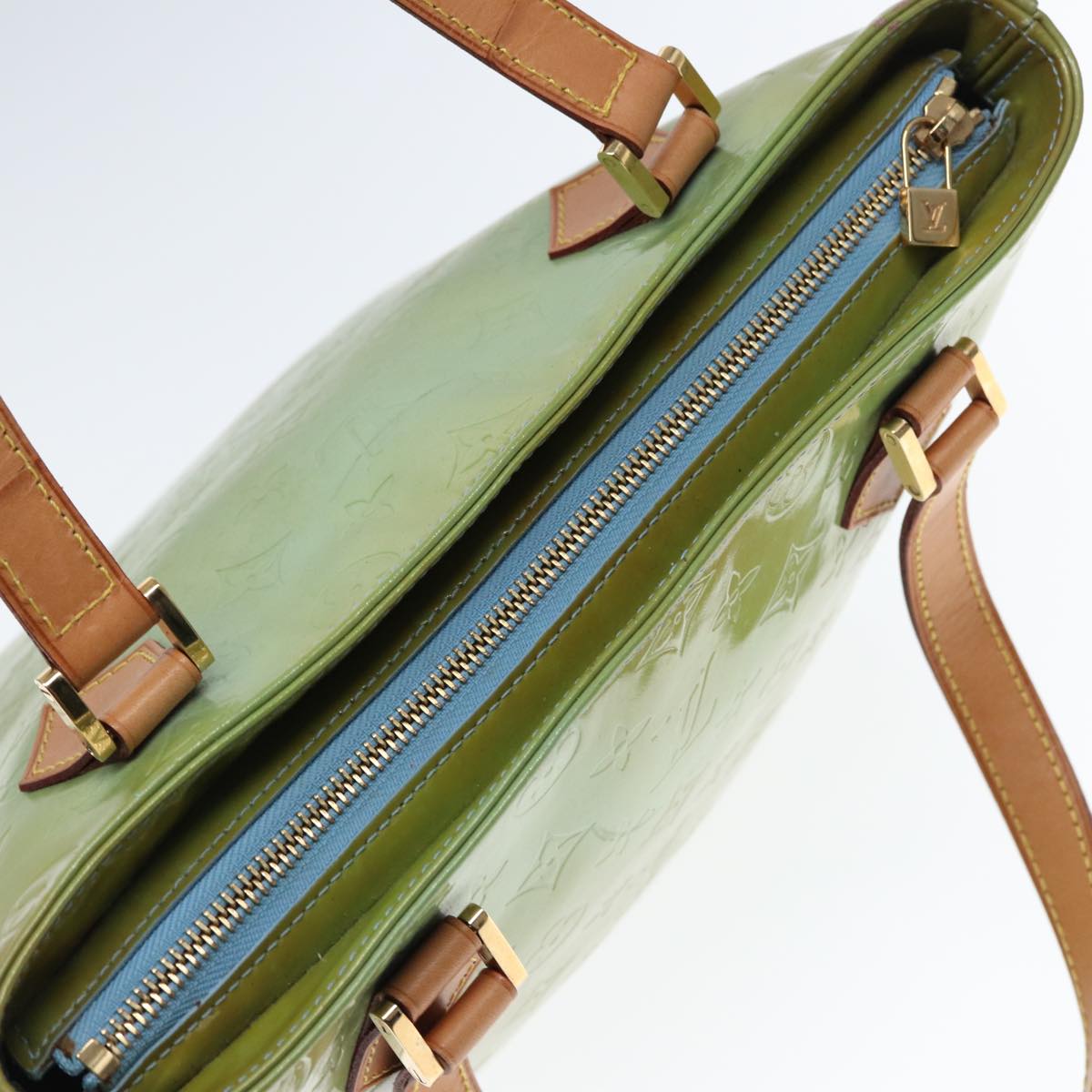 LOUIS VUITTON Monogram Vernis Houston Hand Bag Baby Blue M91005 LV Auth 77930