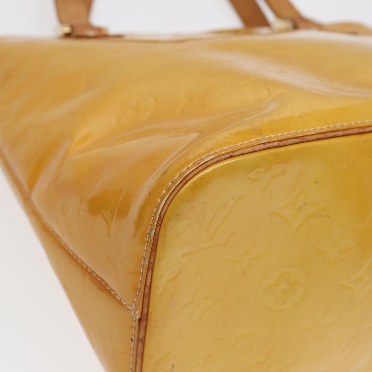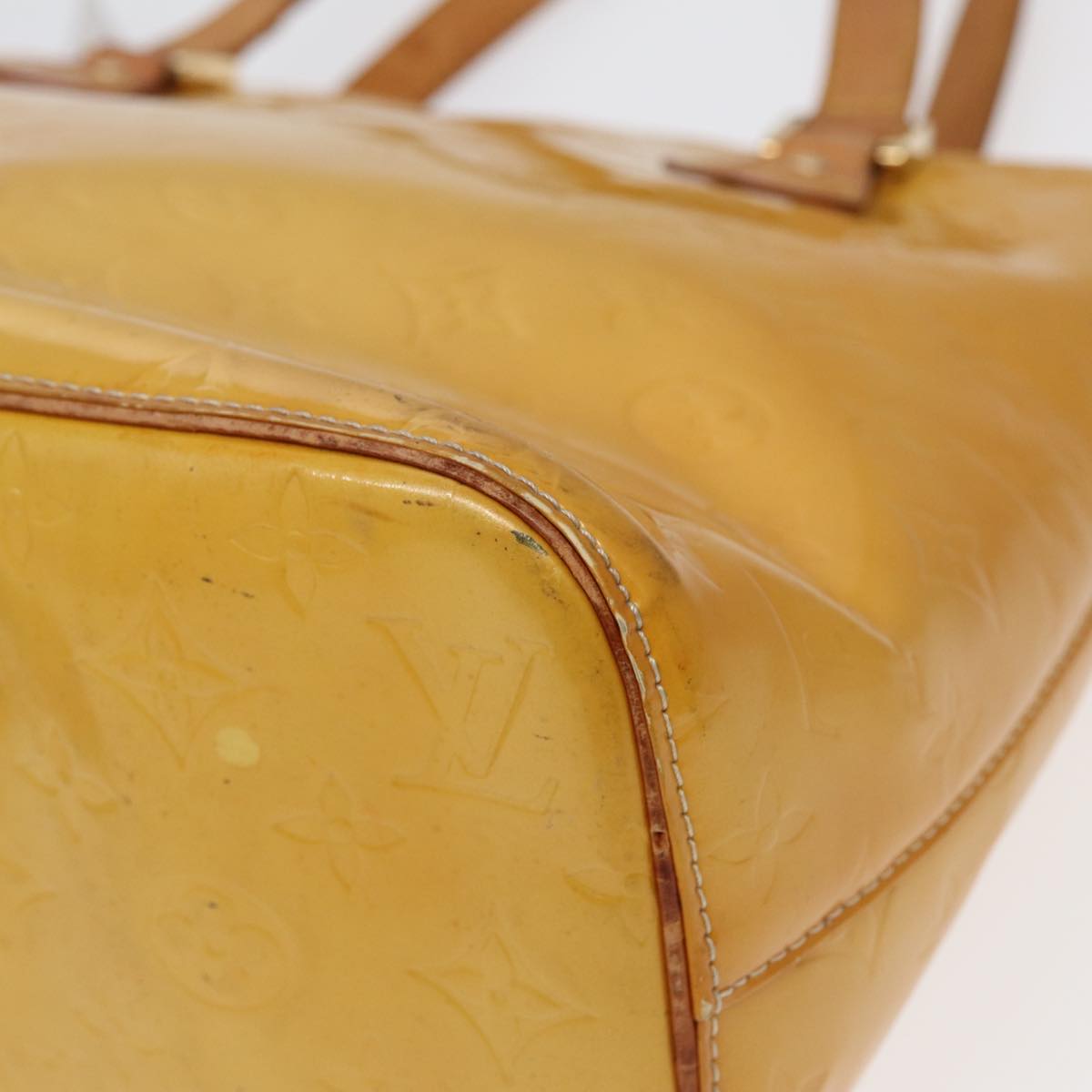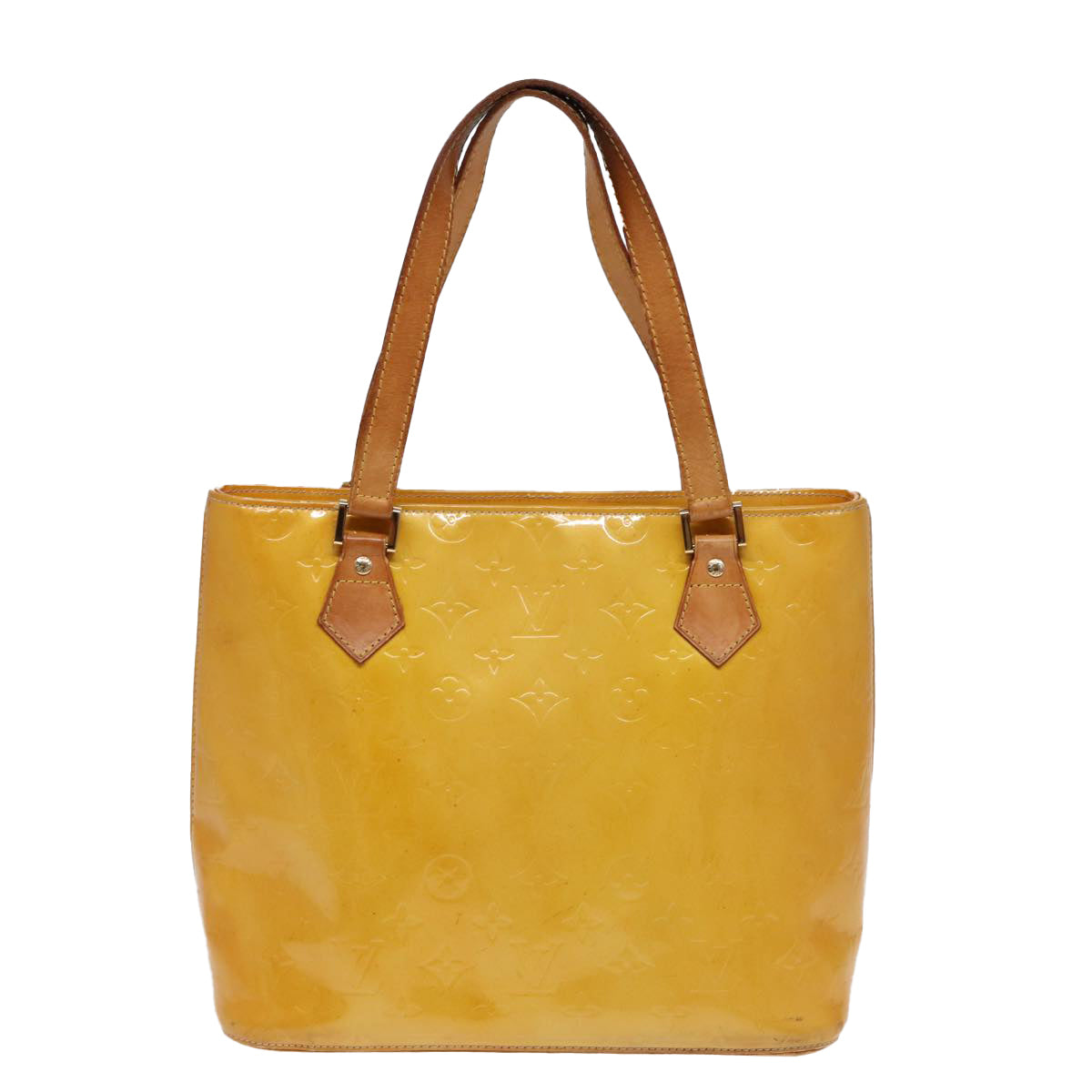 LOUIS VUITTON Monogram Vernis Houston Hand Bag Lime Yellow M91055 LV Auth 85403