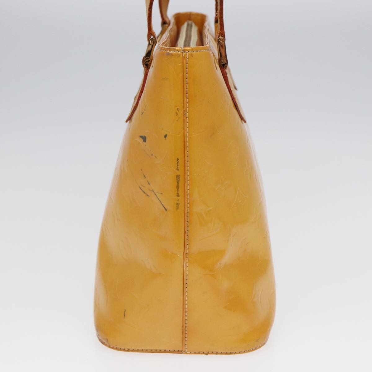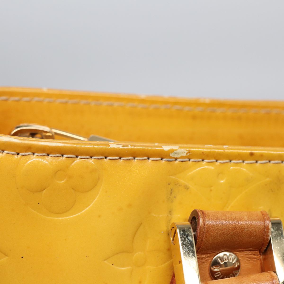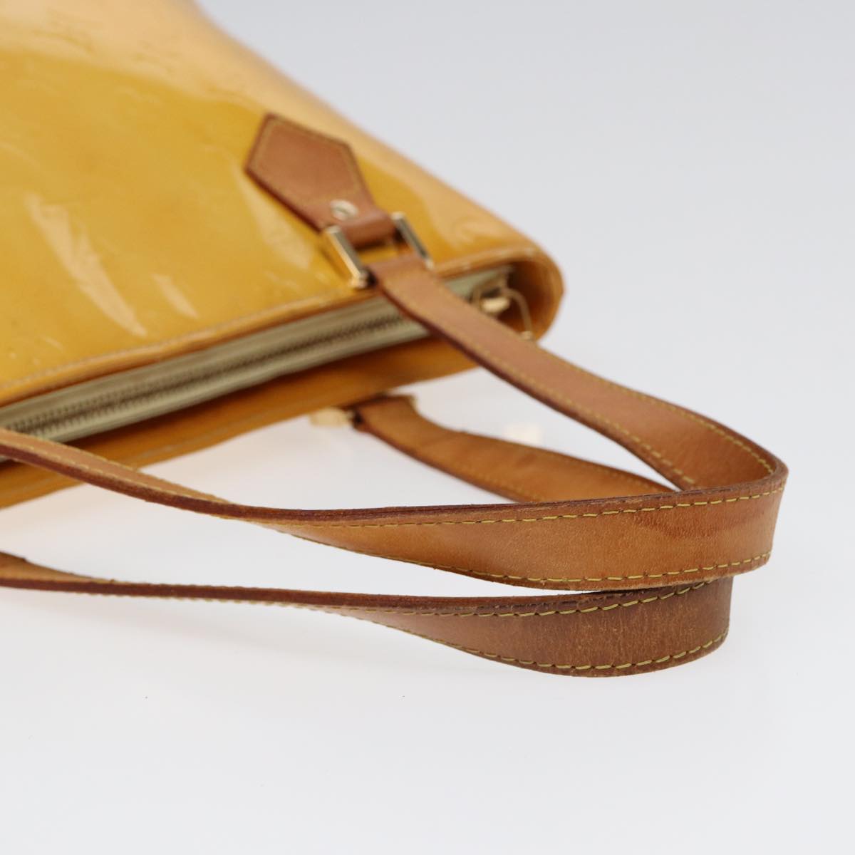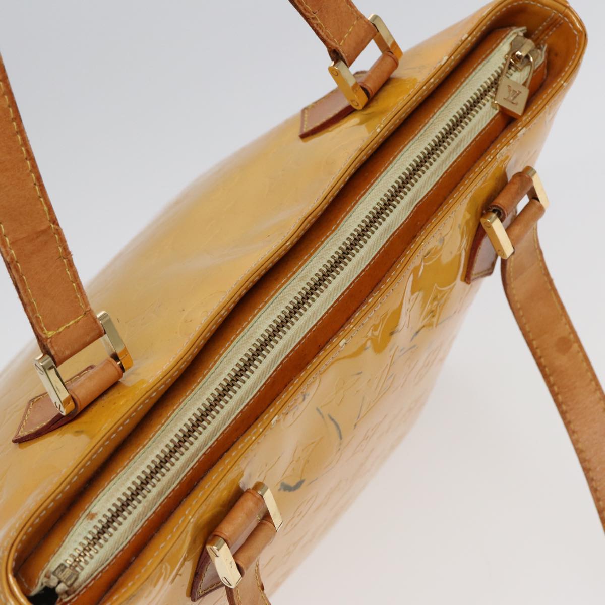 LOUIS VUITTON Monogram Vernis Houston Hand Bag Lime Yellow M91055 LV Auth 85403