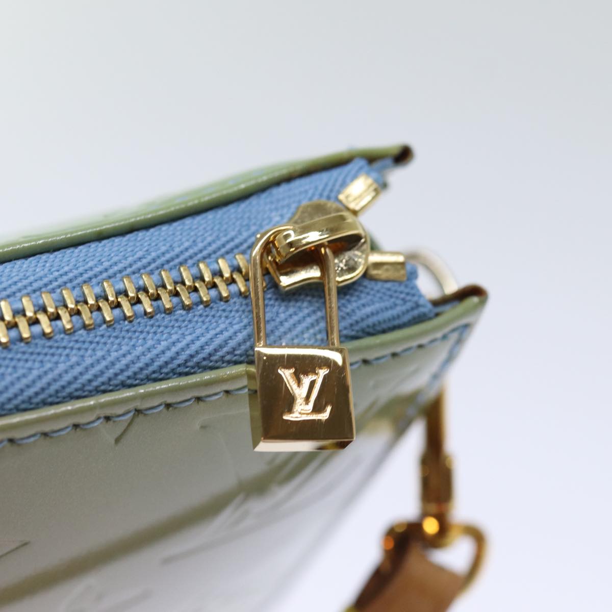LOUIS VUITTON Monogram Vernis Lexington Pouch Baby Blue M91011 LV Auth 74121