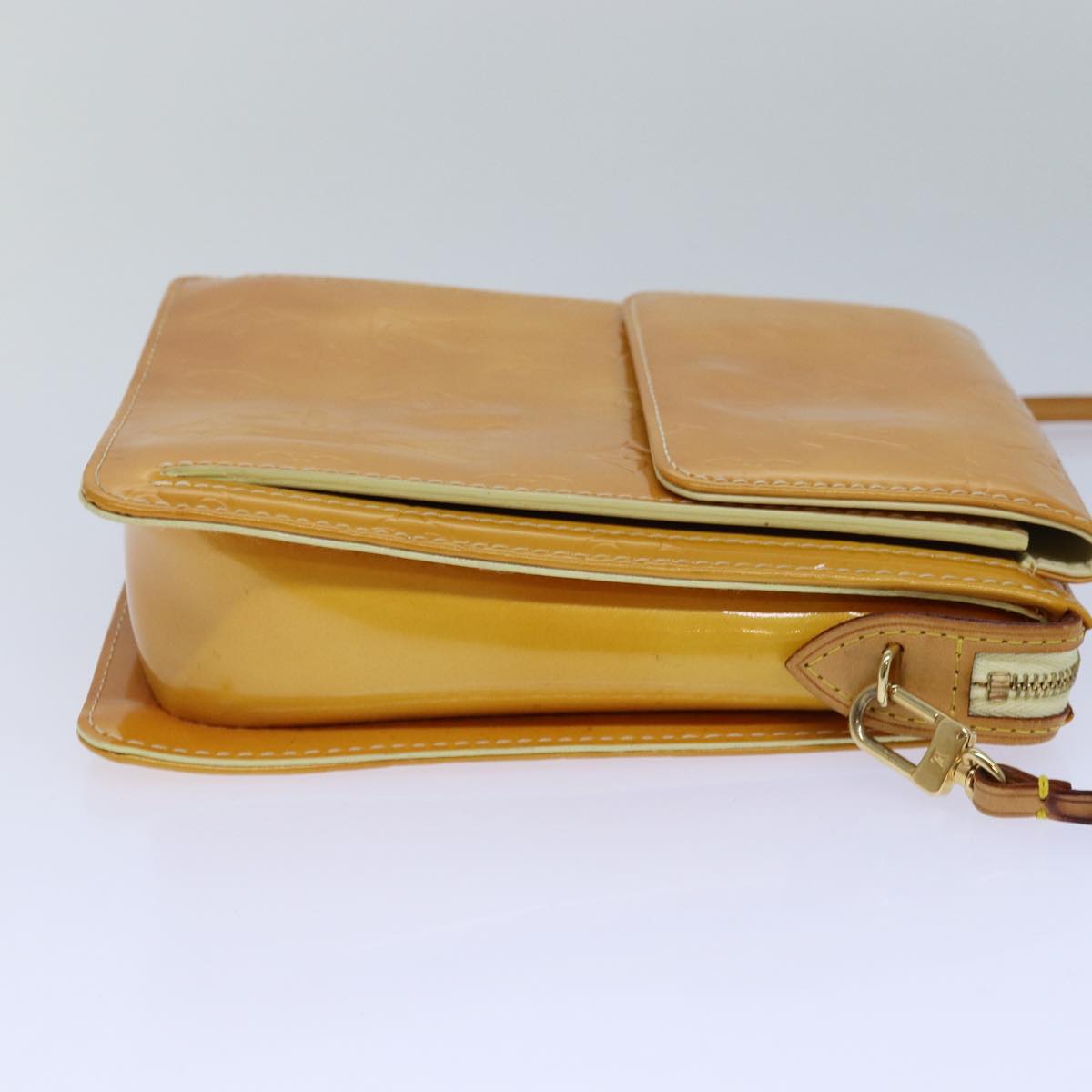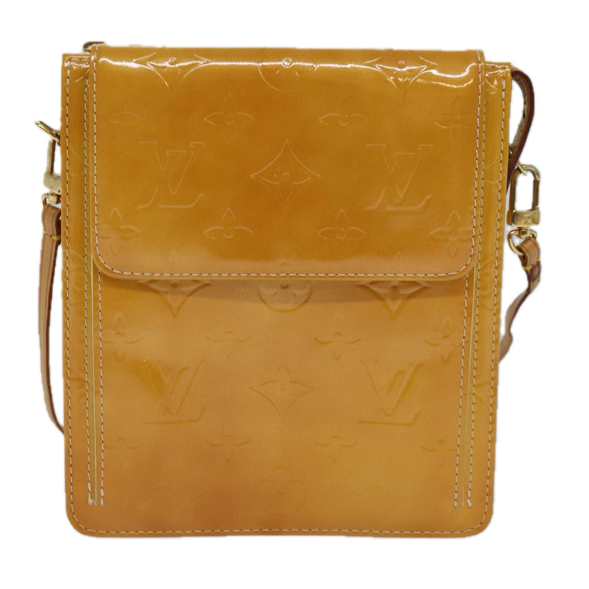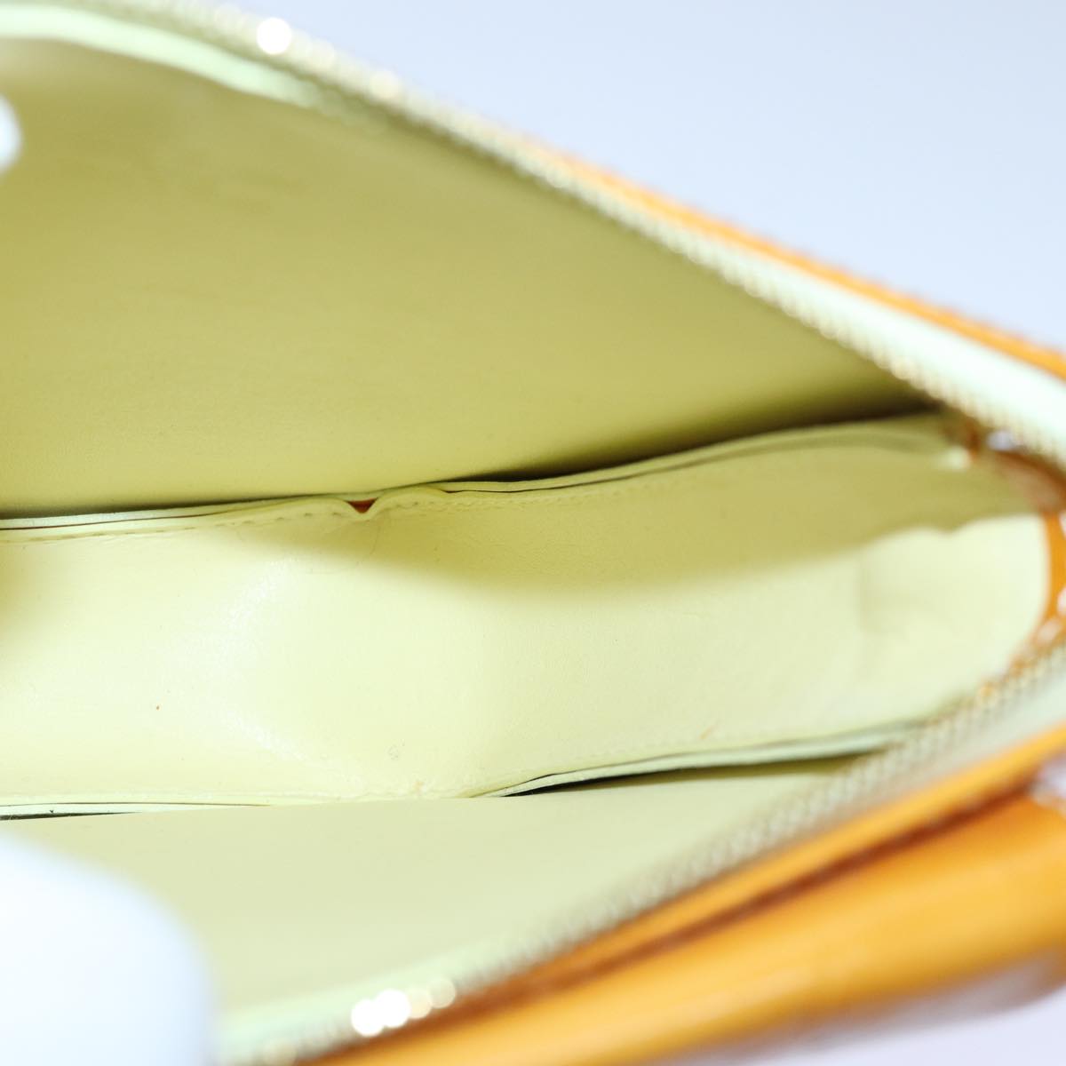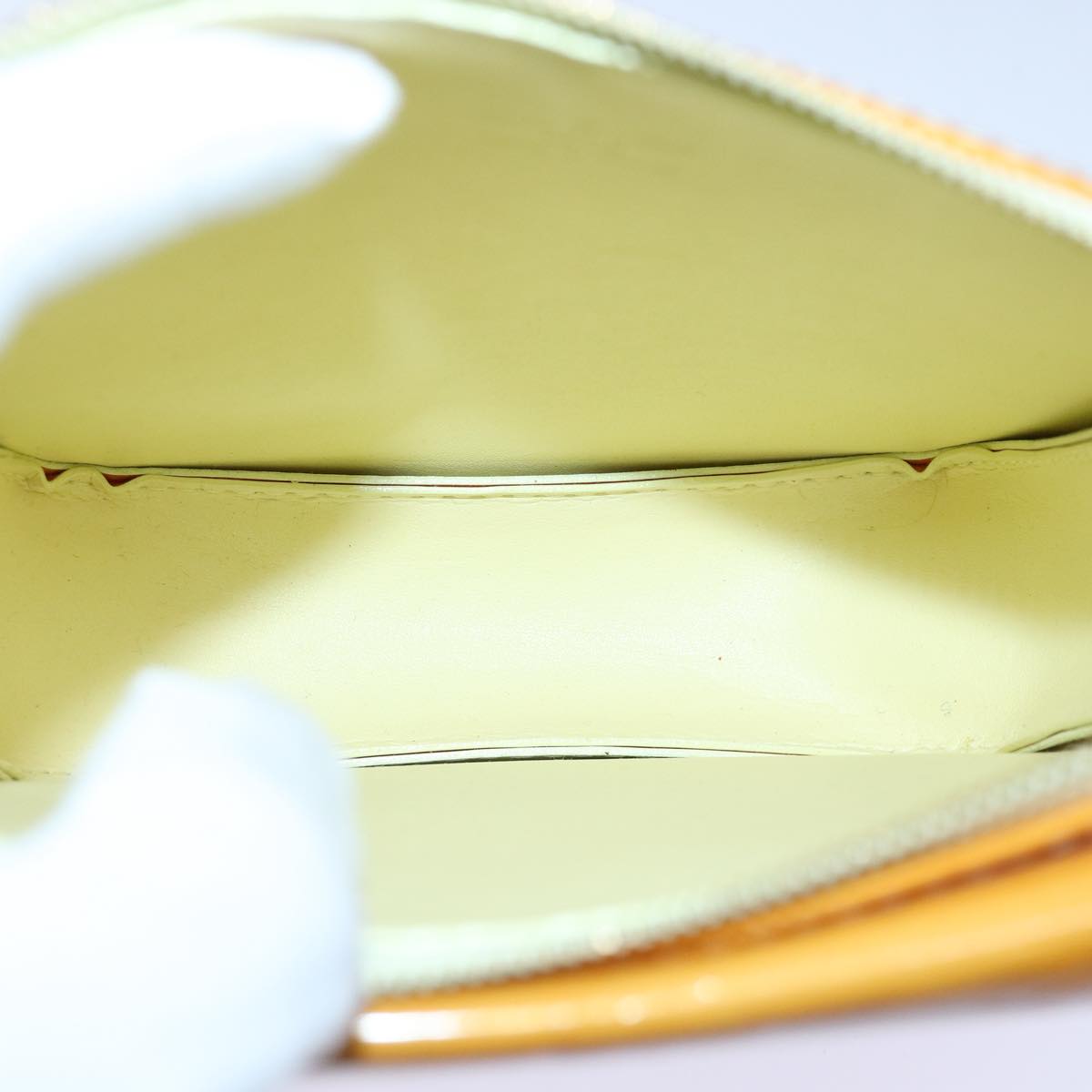 LOUIS VUITTON Monogram Vernis Motto Pouch Lime Yellow M91059 LV Auth 85338
