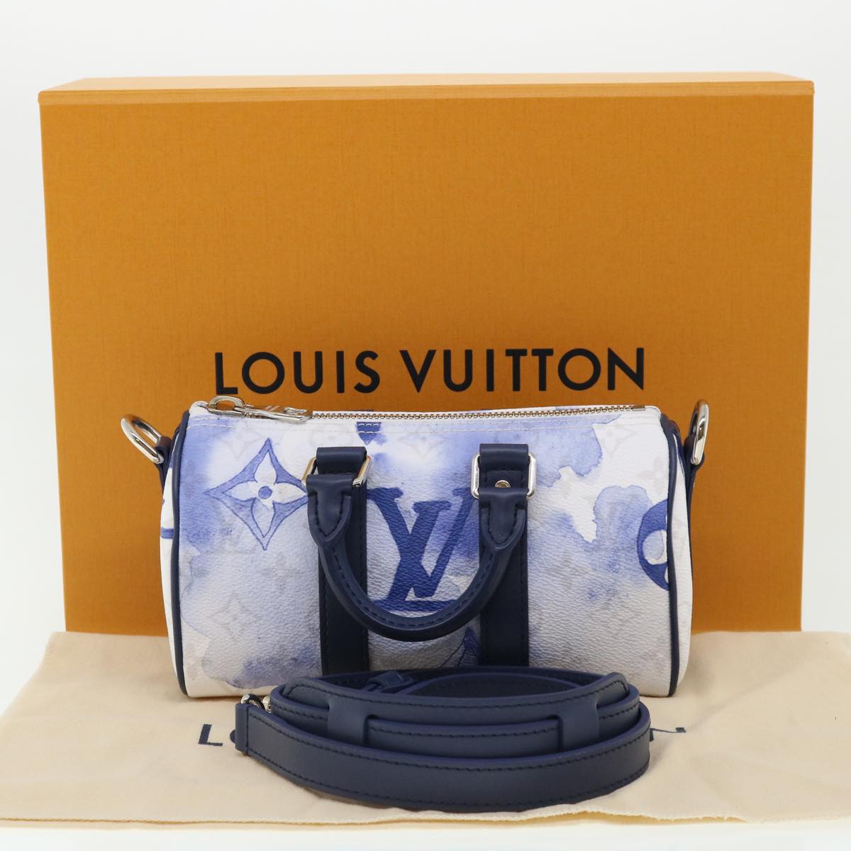 LOUIS VUITTON monogram water KeepallXS Hand Bag 2way Blue M45761 LV Auth 67496S