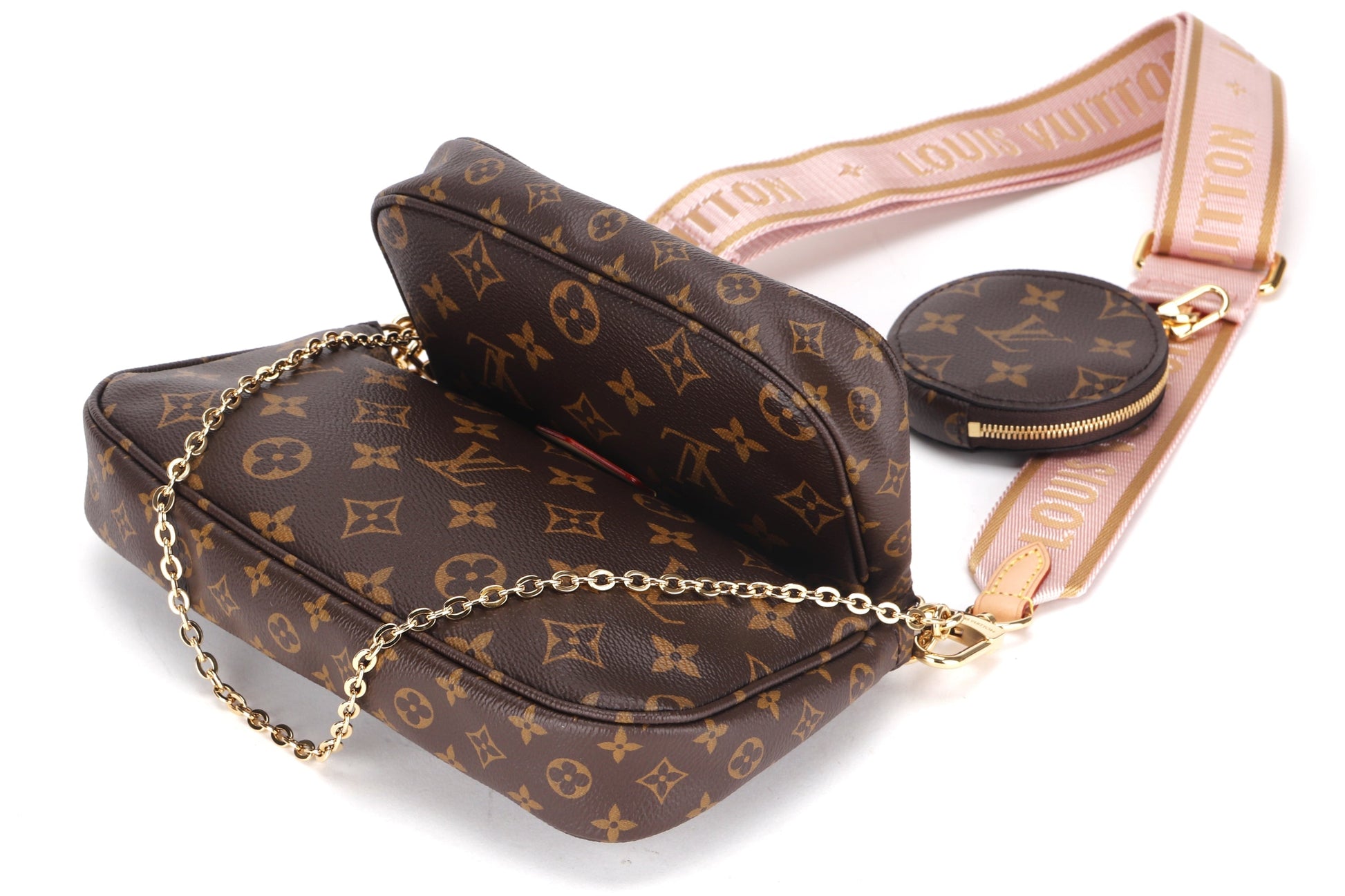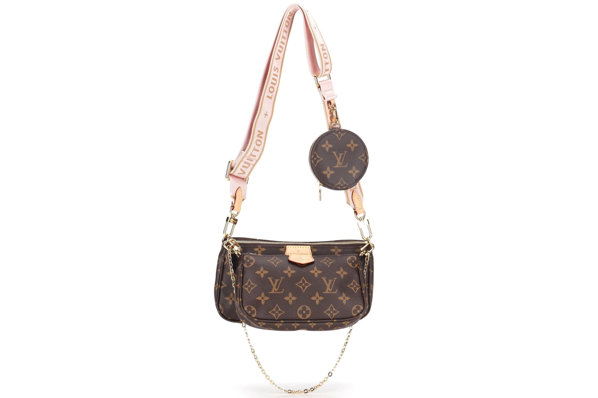 LOUIS VUITTON M44840 MULTI POCHETTE ACCESSORIES ROSE PINK STRAP, WITH DUST COVER