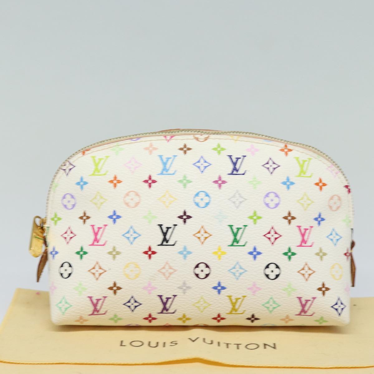 LOUIS VUITTON Multicolor Pochette Cosmetic PM Pouch White M47354 LV Auth 84873