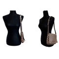 * The bag features a mocha leather crossbody adjustable shoulder strap with polished brass links
