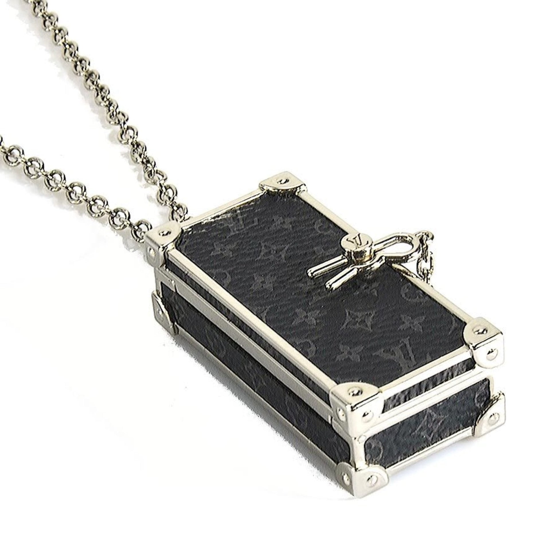 Louis Vuitton Necklace Monogram Eclipse Collier DJ Trunk Metal Black x Silver Men's M68876 h29500g