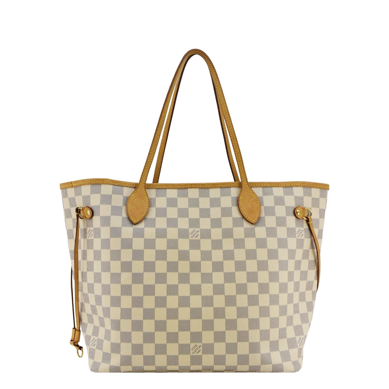 LOUIS VUITTON Neverfull MM Damier Azur Shoulder Bag in White