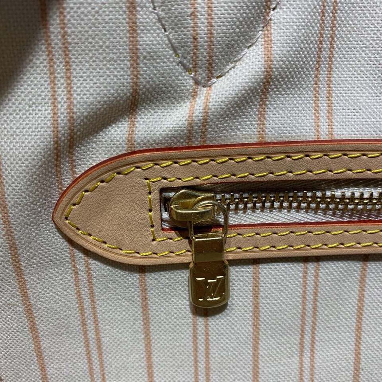 The Neverfull GM tote unites timTLMss design with heritage details. Crafted from fresh Damier Azur canvas with natural trim, it is ultra-roomy yet never bulky, with side laces that cinch for a sleek allure or loostlm for a more casual look. Slim, comfortable handles slip easily over the shoulder or arm. Lined in colorful textile, it features a removable pouch which can serve as a clutch or an extra pocket.