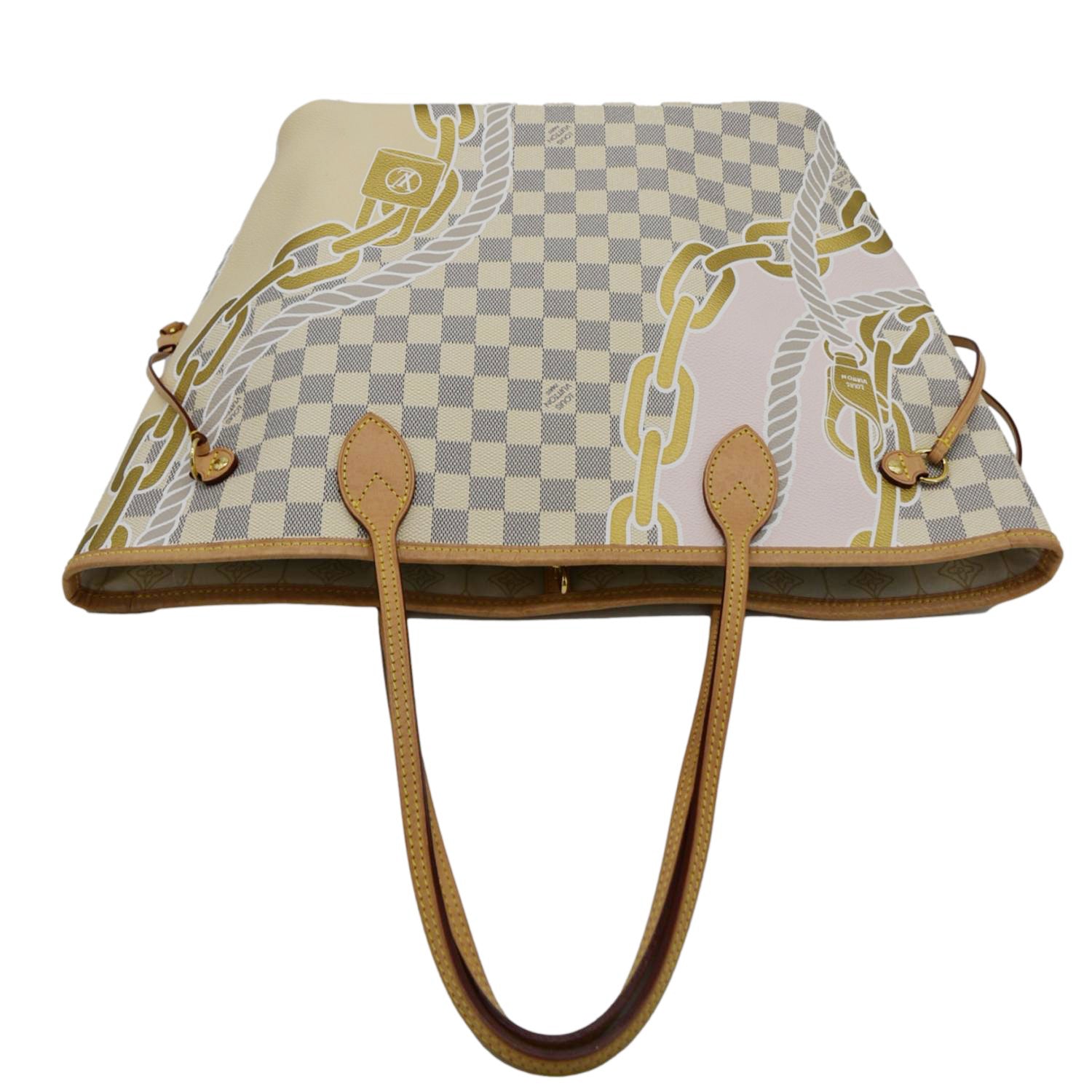 LV Damier Azur Neverfull Nautical MM White Tote Shoulder Bag