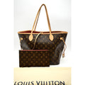 Louis Vuitton Neverfull MM Monogram Canvas Tote Bag Brown/Red
