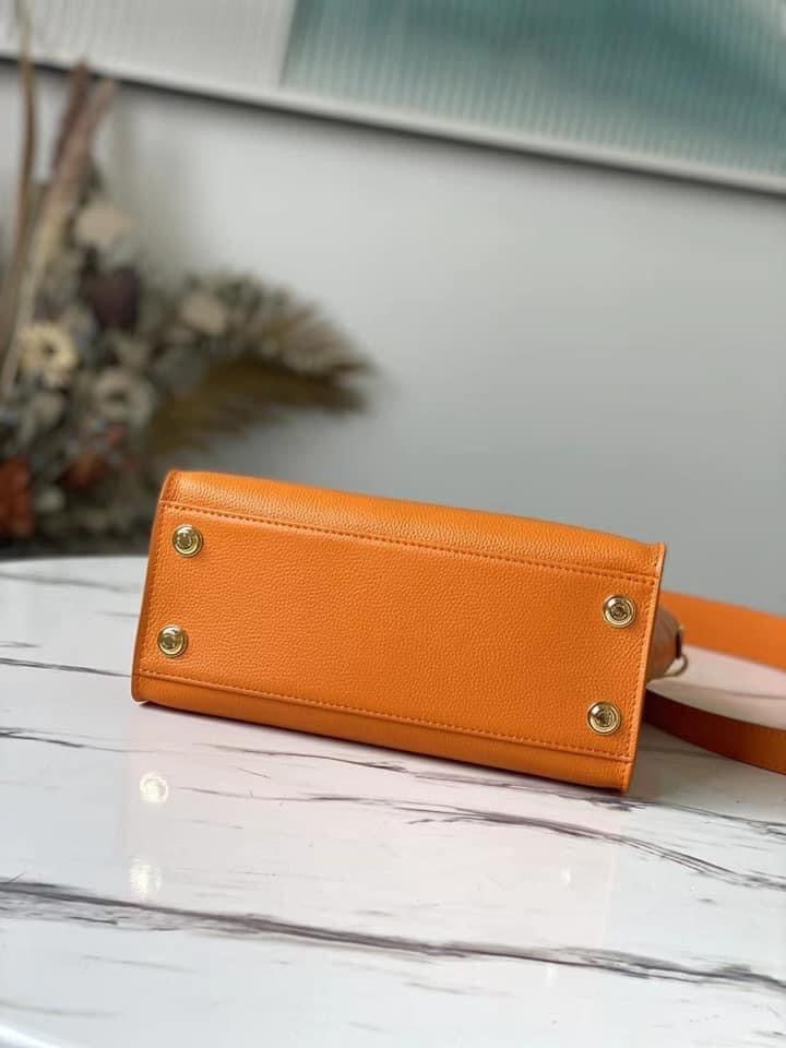 Fashioned from smooth calf leather with side panels in Mahina calf leather, this On My Side PM tote bag is a smaller version of the original On My Side tote. Versatile, it has numerous pockets, including two large outside pockets. The side panels are delicately perforated with the Monogram pattern for a subtle Louis Vuitton signature.
