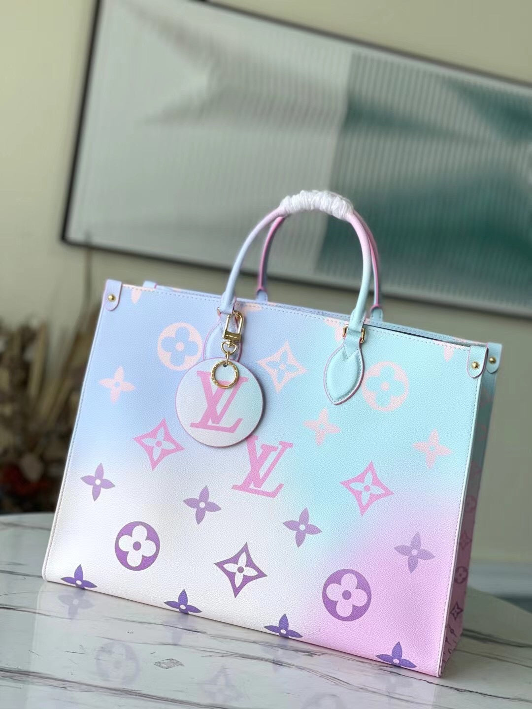 This edition of the OnTheGo GM tote features a pretty pastel colorway, new for Spring 2022. With its sleek design and spacious interior, it is destined to become a go-to carryall for business, shopping or travel. Equipped with both Toron top handles and long shoulder straps, this versatile Bag offers multiple convenient carry styles.