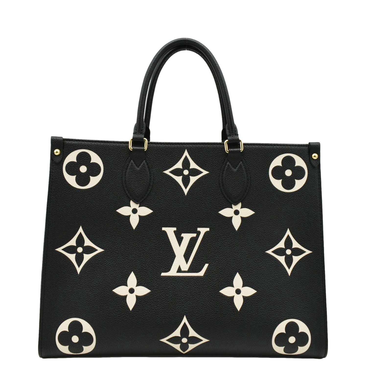 LOUIS VUITTON Onthego MM Giant Bicolor Monogram Empreinte Leather Tote Shoulder Bag Black