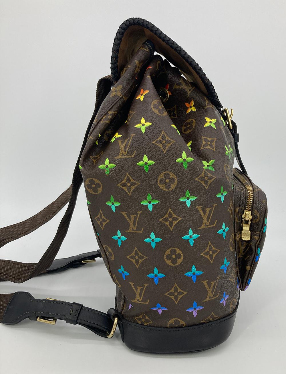 OOAK Louis Vuitton Hand Painted Leather Wrapped Montsouris GM Backpack in very good condition.