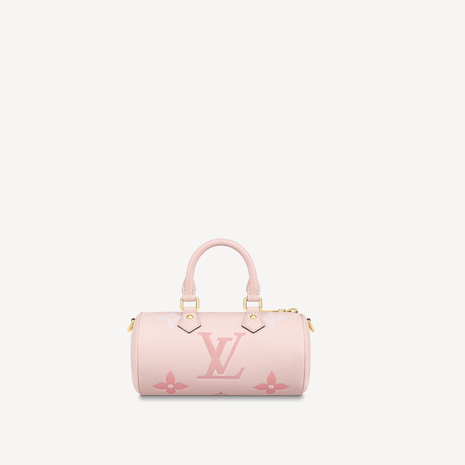 Characteristics: This adorable version of the historic Papillon shape, the Papillon BB carryall bag, is made from pastel Monogram Empreinte leather with a gradient Monogram print. Its iconic lines get a sporty update thanks to its detachable Louis Vuitton jacquard strap. The removable round coin purse brings a playful touch.