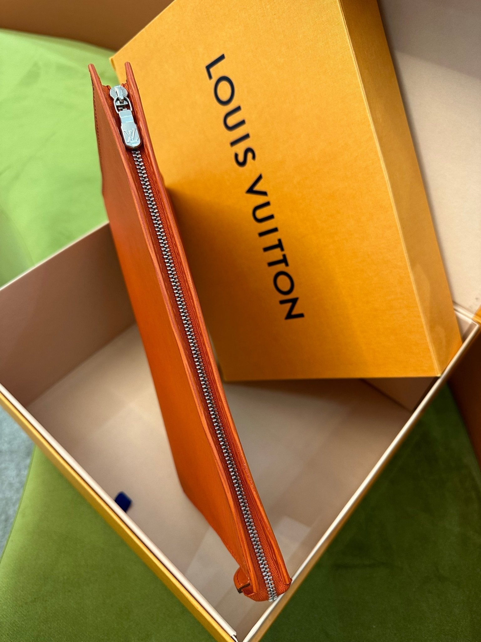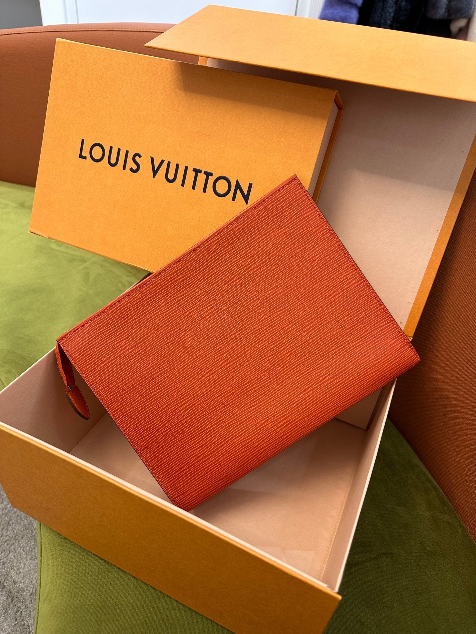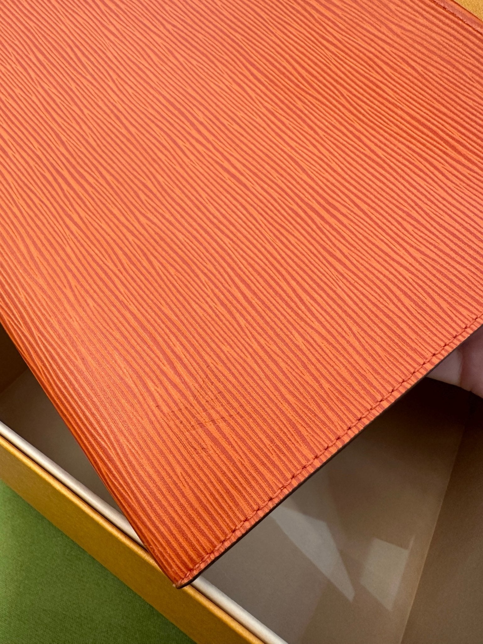 La célèbre pochette Vuitton ici dans une version cuir épi orange en état parfait !