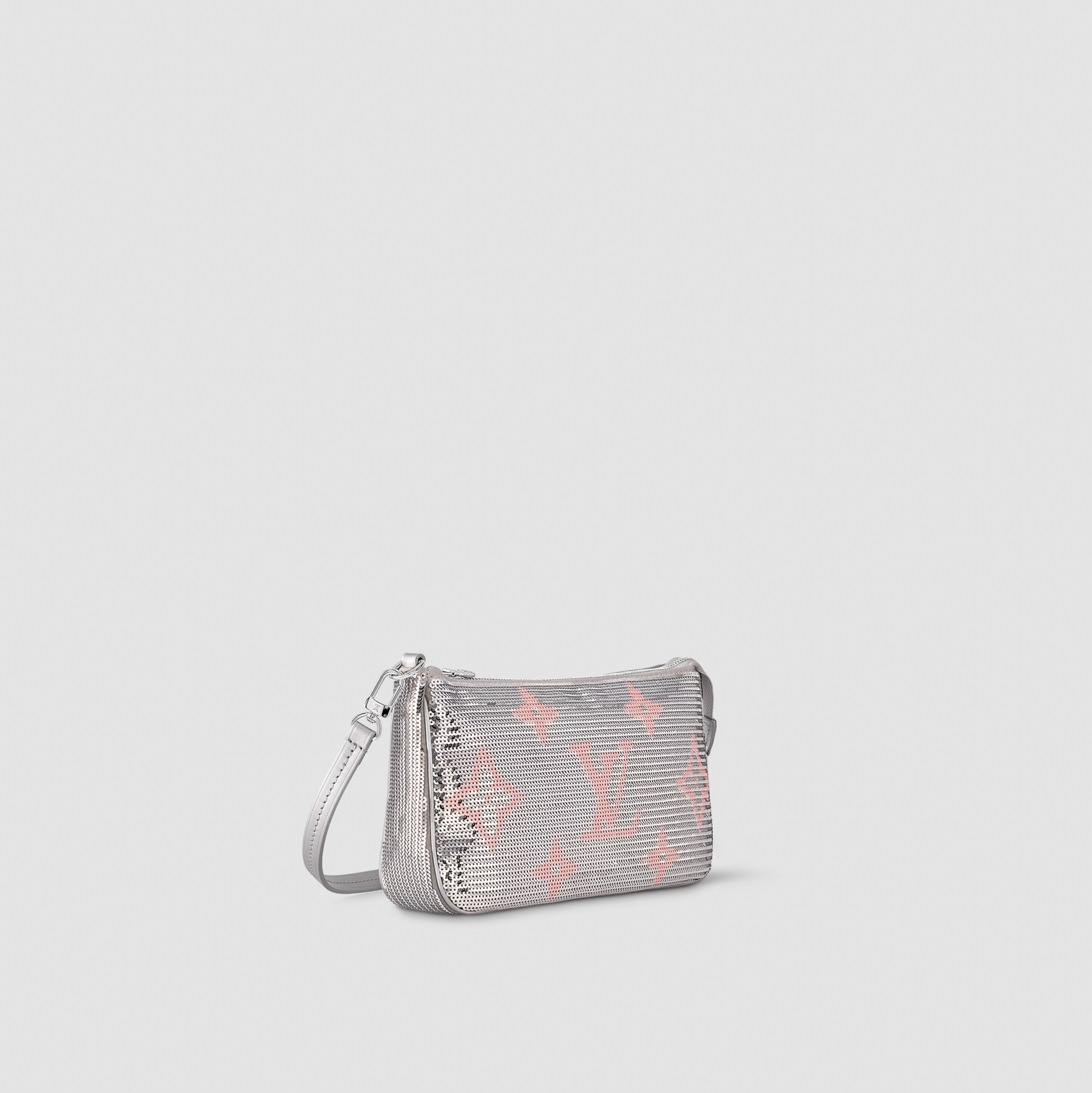 Characteristics: The Maison presents a sparkly edition of the Pochette Accessoires handbag, a shimmering accessory to accompany every festive look, day or night. This covetable piece gives a glamorous 2000s-era vibe: Entirely embroidered with sequins on a satin base, it features a bicolor mix that reveals a Giant Monogram motif – an alluring signature.
