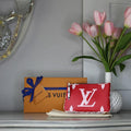 As part of the Summer 2019 collection, the Pochette Double Zip plays with different sizes of Monogram canvas in eye-catching red and pink. This versatile pouch features two zipped pockets for valuables and a middle space offering direct access to essentials. It can be carried on the shoulder or in the hand.