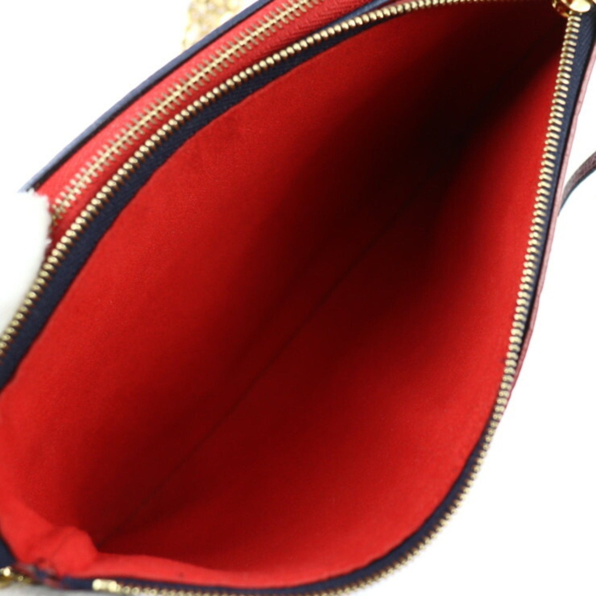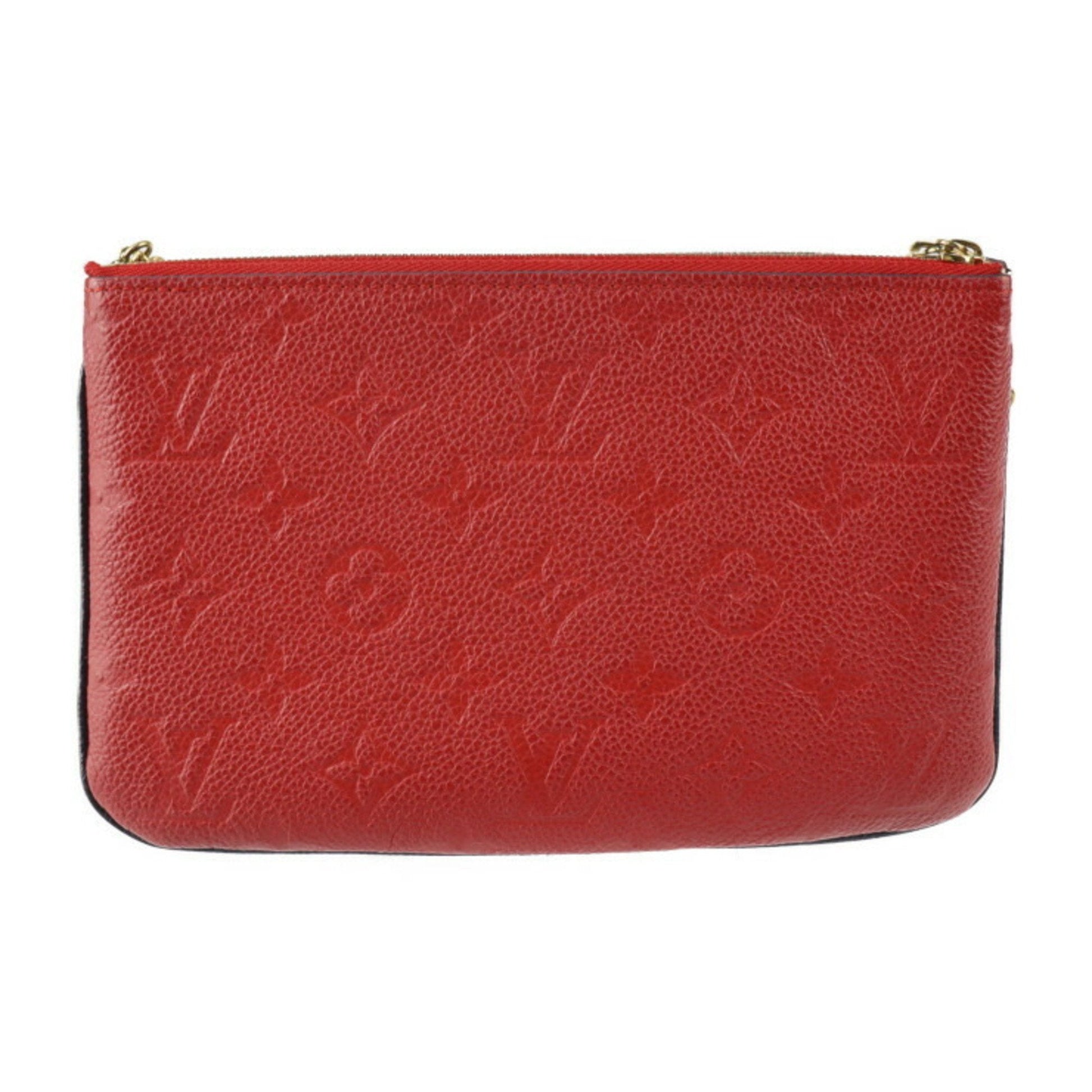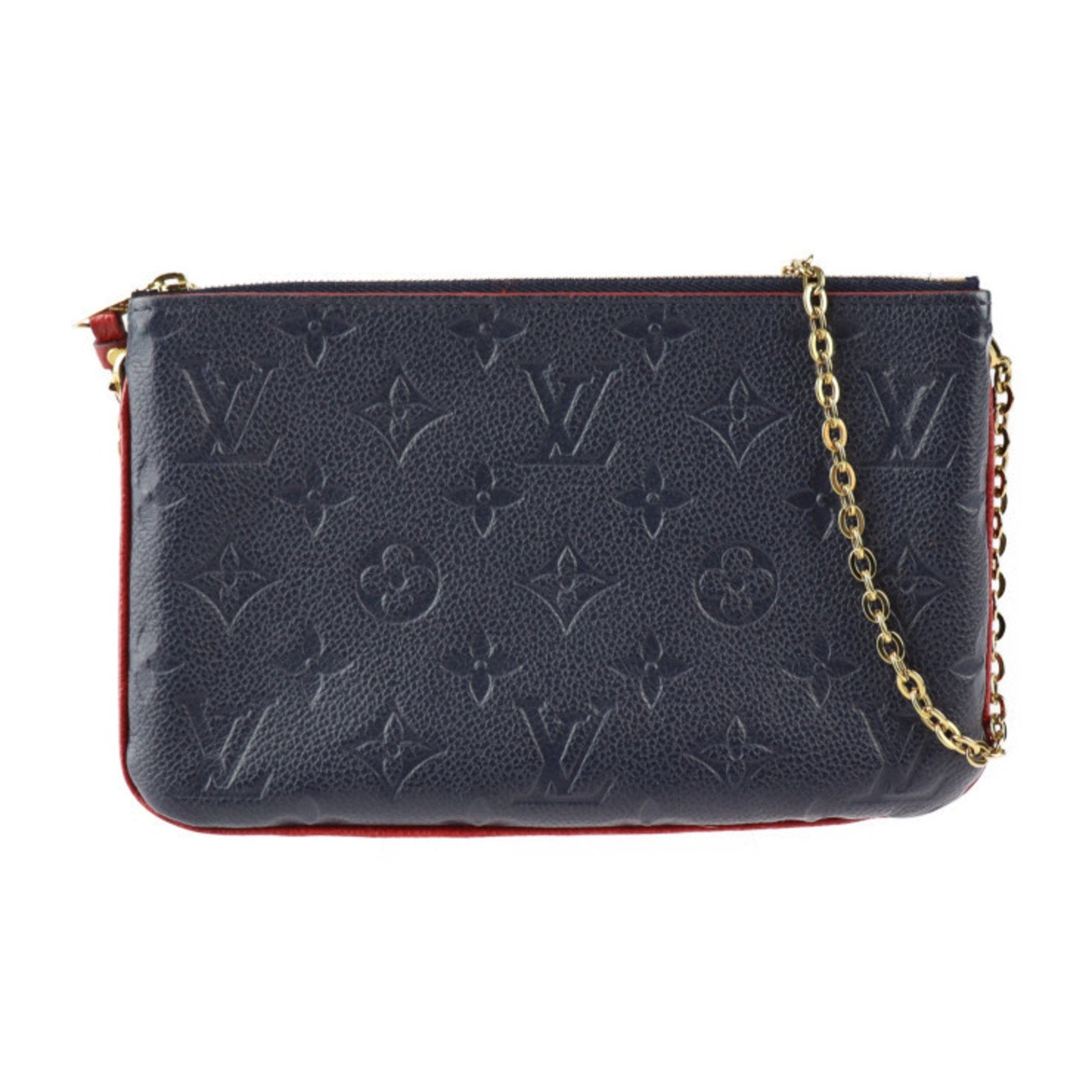 LOUIS VUITTON Pochette Double Zip Shoulder Bag M63916 Monogram Empreinte Marine Rouge Gold Hardware 2WAY Clutch Chain